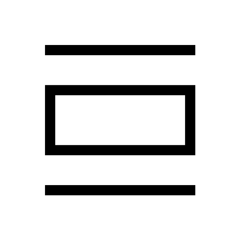 <svg width="800px" height="800px" viewBox="0 0 24 24" xmlns="http://www.w3.org/2000/svg" aria-labelledby="listViewIconTitle" stroke="#000000" stroke-width="1" stroke-linecap="square" stroke-linejoin="miter" fill="none" color="#000000"> <title id="listViewIconTitle">List view</title> <path d="M5 5H19"/> <path d="M5 19H19"/> <rect x="5" y="9" width="14" height="6"/> </svg>