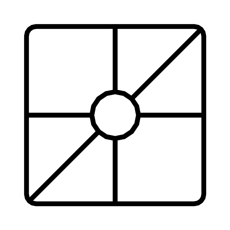 <svg width="800px" height="800px" viewBox="0 0 48 48" xmlns="http://www.w3.org/2000/svg"><defs><style>.a{fill:none;stroke:#000000;stroke-linecap:round;stroke-linejoin:round;}</style></defs><path class="a" d="M40.5,5.5H7.5a2,2,0,0,0-2,2v33a2,2,0,0,0,2,2h33a2,2,0,0,0,2-2V7.5A2,2,0,0,0,40.5,5.5Z"/><circle class="a" cx="24" cy="24" r="4.87"/><line class="a" x1="19.13" y1="24" x2="5.5" y2="24"/><line class="a" x1="24" y1="19.13" x2="24" y2="5.5"/><line class="a" x1="28.87" y1="24" x2="42.5" y2="24"/><line class="a" x1="24" y1="28.87" x2="24" y2="42.5"/><line class="a" x1="27.44" y1="20.56" x2="41.91" y2="6.09"/><line class="a" x1="20.56" y1="27.44" x2="6.09" y2="41.91"/></svg>