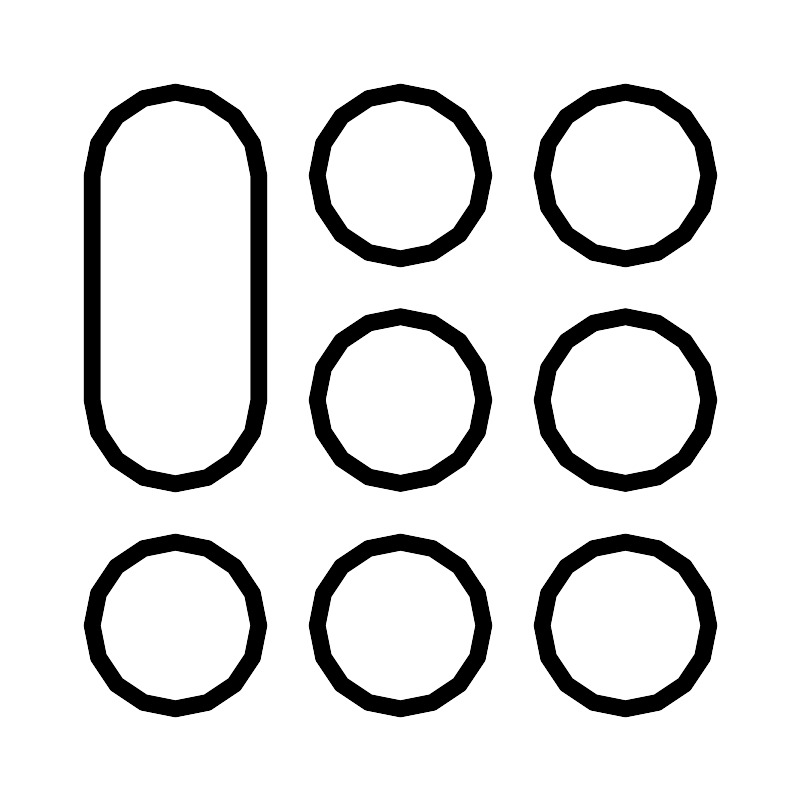 <svg width="800px" height="800px" viewBox="0 0 48 48" id="b" xmlns="http://www.w3.org/2000/svg"><defs><style>.c{fill:none;stroke:#000000;stroke-linecap:round;stroke-linejoin:round;}</style></defs><rect class="c" x="5.5" y="5.5" width="10" height="23.5" rx="5" ry="5"/><circle class="c" cx="24" cy="10.5" r="5"/><circle class="c" cx="24" cy="23.9738" r="5"/><circle class="c" cx="37.5" cy="10.5" r="5"/><circle class="c" cx="37.5" cy="23.9738" r="5"/><circle class="c" cx="24" cy="37.5" r="5"/><circle class="c" cx="10.5" cy="37.5" r="5"/><circle class="c" cx="37.5" cy="37.5" r="5"/></svg>