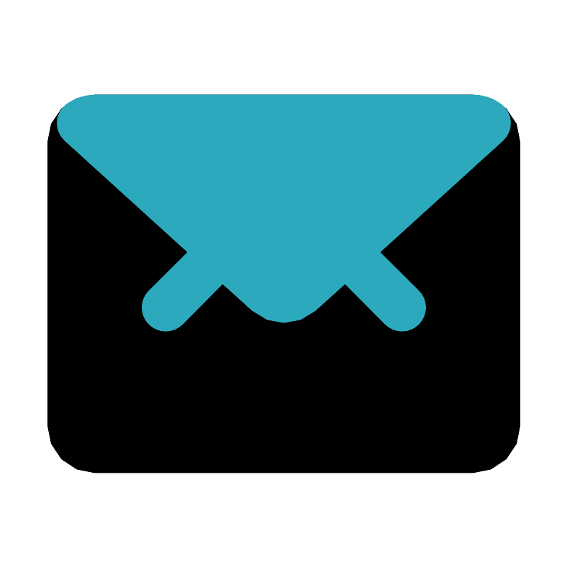 <svg fill="#000000" width="800px" height="800px" viewBox="0 0 24 24" id="mail-2" data-name="Flat Color" xmlns="http://www.w3.org/2000/svg" class="icon flat-color"><rect id="primary" x="2" y="4" width="20" height="16" rx="2" style="fill: rgb(0, 0, 0);"></rect><path id="secondary" d="M21.6,5.14a1,1,0,0,0-.42-.76A2,2,0,0,0,20,4H4a2.12,2.12,0,0,0-1.18.38,1,1,0,0,0-.42.76,1,1,0,0,0,.33.8l5.2,4.72L6.29,12.29a1,1,0,0,0,0,1.42,1,1,0,0,0,1.42,0L9.41,12l1.25,1.13a2,2,0,0,0,2.68,0L14.59,12l1.7,1.71a1,1,0,0,0,1.42,0,1,1,0,0,0,0-1.42l-1.64-1.63,5.2-4.72A1,1,0,0,0,21.6,5.14Z" style="fill: rgb(44, 169, 188);"></path></svg>