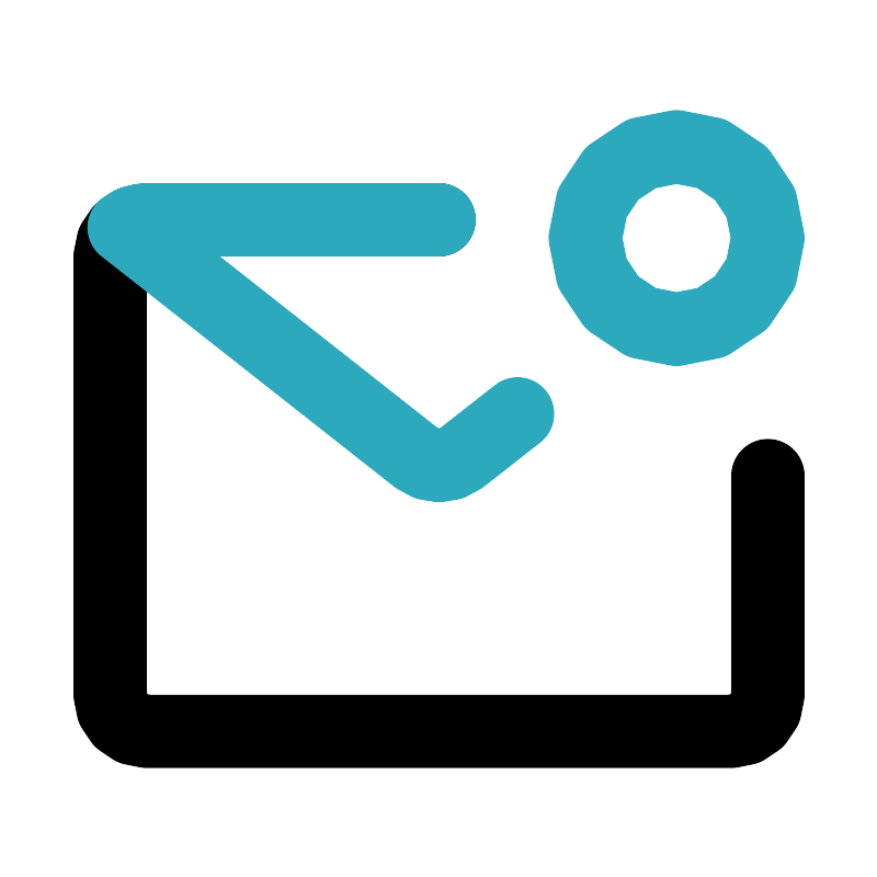 <svg fill="#000000" width="800px" height="800px" viewBox="0 0 24 24" id="mail-notification-2" data-name="Line Color" xmlns="http://www.w3.org/2000/svg" class="icon line-color"><path id="primary" d="M21,13v6a1,1,0,0,1-1,1H4a1,1,0,0,1-1-1V7A1,1,0,0,1,4,6h8" style="fill: none; stroke: rgb(0, 0, 0); stroke-linecap: round; stroke-linejoin: round; stroke-width: 2;"></path><path id="secondary" d="M14.15,11.31l-1.53,1.2a1,1,0,0,1-1.24,0l-8-6.3A1,1,0,0,1,4,6h8" style="fill: none; stroke: rgb(44, 169, 188); stroke-linecap: round; stroke-linejoin: round; stroke-width: 2;"></path><circle id="secondary-2" data-name="secondary" cx="18.5" cy="6.5" r="2.5" style="fill: none; stroke: rgb(44, 169, 188); stroke-linecap: round; stroke-linejoin: round; stroke-width: 2;"></circle></svg>
