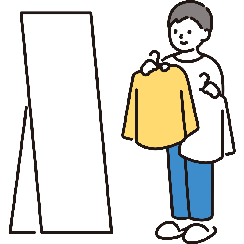 Man choosing clothes in front of mirror