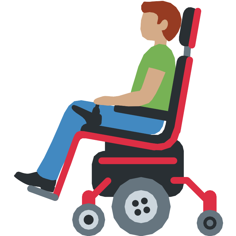 Мужчина в моторизованной инвалидной коляске (средний тон кожи)