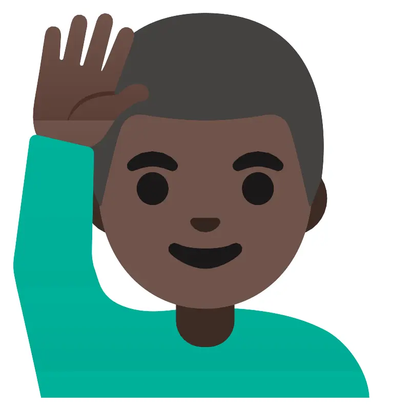 Мужчина с поднятой рукой с темной кожей (Man raising hand dark skin tone)