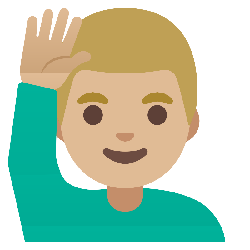 Мужчина с поднятой рукой со средней светлой кожей (Man raising hand medium light skin tone)