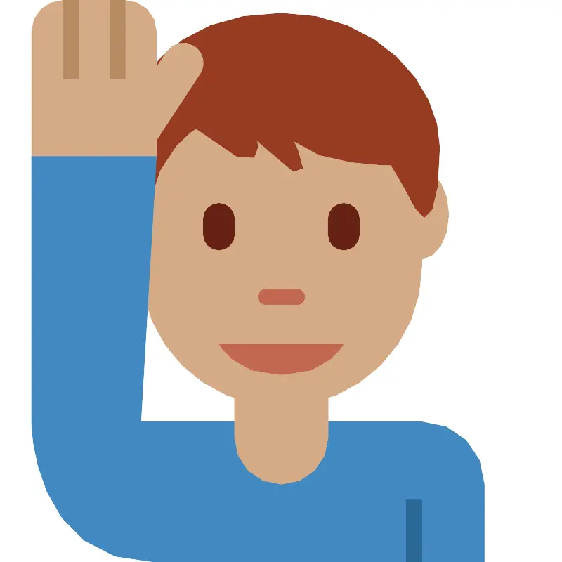 Мужчина с поднятой рукой со средним оттенком кожи