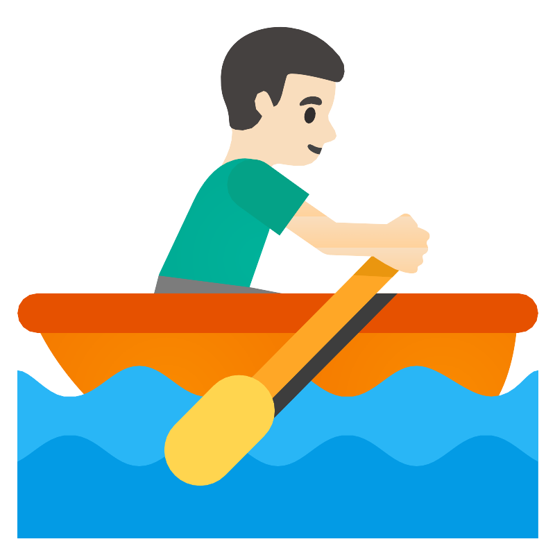 Мужчина со светлой кожей, гребет на лодке