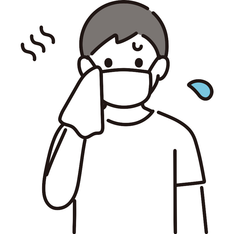 Мужчина протирает лицо и пот