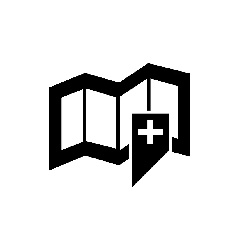 <path fill="#000000" fill-opacity="1" stroke-width="0.2" stroke-linejoin="round" d="M 43,37L 55,37L 55,49L 43,61L 43,37 Z M 45,42L 45,44L 48,44L 48,47L 50,47L 50,44L 53,44L 53,42L 50,42.0001L 50,39L 48,39L 48,42L 45,42 Z M 27.7083,23.75L 38.7917,26.9167L 48.2917,20.5833L 62,24L 62,51L 56,49.4681L 56,44.6944L 58,45.25L 58,28L 49,25.5L 49,36L 48,36L 48,25.5L 39,31.5L 39,49L 42,47L 42,51.6944L 38.7917,53.8333L 27.7083,50.6667L 16,55.5L 16,28.5L 27.7083,23.75 Z M 27,46.25L 27,29L 20,31.75L 20,49L 27,46.25 Z M 28,28.75L 28,46L 38,48.5L 38,31.75L 28,28.75 Z "/>