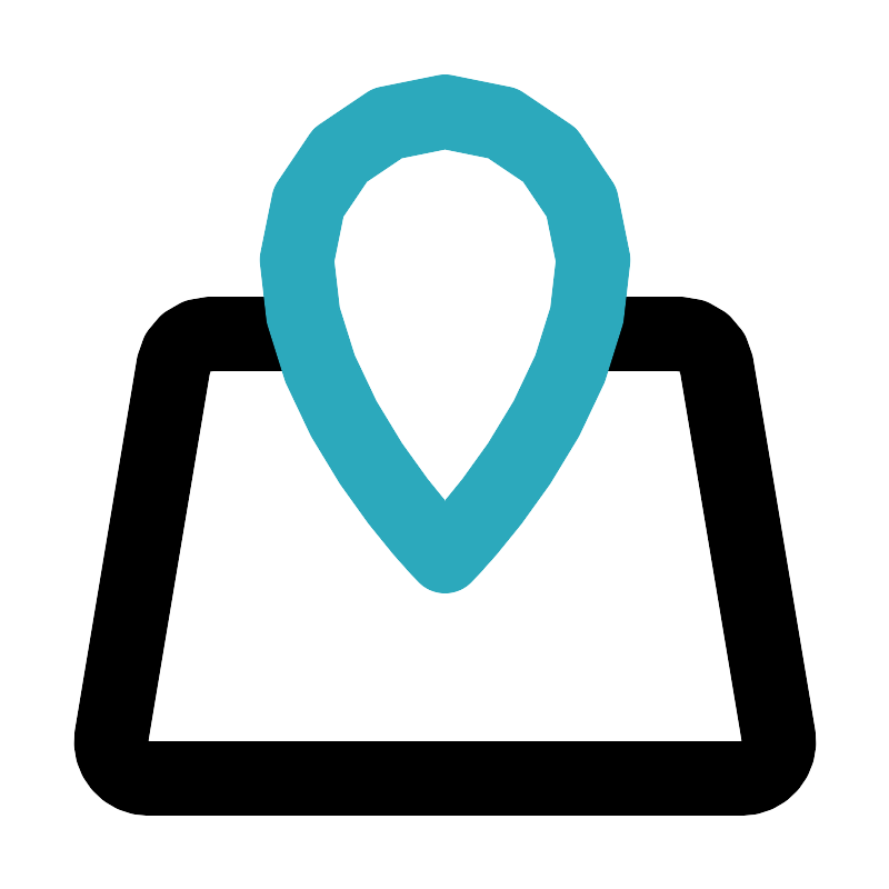 <svg fill="#000000" width="800px" height="800px" viewBox="0 0 24 24" id="maps-location" data-name="Line Color" xmlns="http://www.w3.org/2000/svg" class="icon line-color"><path id="primary" d="M16,9h2.33a1,1,0,0,1,1,.84l1.67,10A1,1,0,0,1,20,21H4a1,1,0,0,1-1-1.16l1.67-10a1,1,0,0,1,1-.84H8" style="fill: none; stroke: rgb(0, 0, 0); stroke-linecap: round; stroke-linejoin: round; stroke-width: 2;"></path><path id="secondary" d="M16,7A4,4,0,0,0,8,7c0,4,4,8,4,8S16,11,16,7Z" style="fill: none; stroke: rgb(44, 169, 188); stroke-linecap: round; stroke-linejoin: round; stroke-width: 2;"></path></svg>