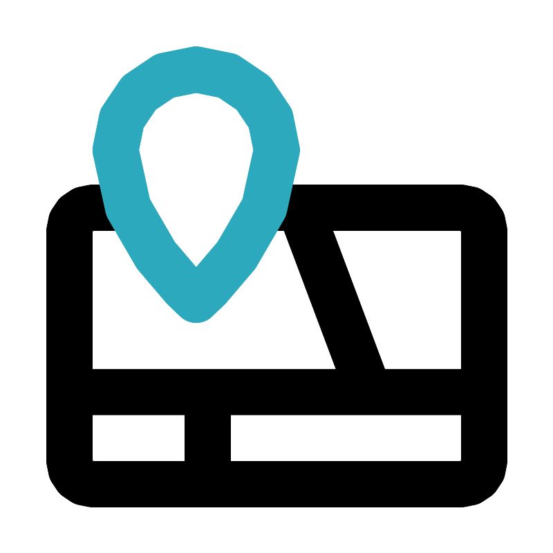 <svg fill="#000000" width="800px" height="800px" viewBox="0 0 24 24" id="maps-location-place" data-name="Line Color" xmlns="http://www.w3.org/2000/svg" class="icon line-color"><path id="primary" d="M12,9h8a1,1,0,0,1,1,1V20a1,1,0,0,1-1,1H4a1,1,0,0,1-1-1V10A1,1,0,0,1,4,9H5" style="fill: none; stroke: rgb(0, 0, 0); stroke-linecap: round; stroke-linejoin: round; stroke-width: 2;"></path><path id="primary-2" data-name="primary" d="M13,9l3,8m5,0H3m6,0v4" style="fill: none; stroke: rgb(0, 0, 0); stroke-linecap: round; stroke-linejoin: round; stroke-width: 2;"></path><path id="secondary" d="M8.5,13S12,10,12,6.5a3.5,3.5,0,0,0-7,0C5,10,8.5,13,8.5,13Z" style="fill: none; stroke: rgb(44, 169, 188); stroke-linecap: round; stroke-linejoin: round; stroke-width: 2;"></path></svg>