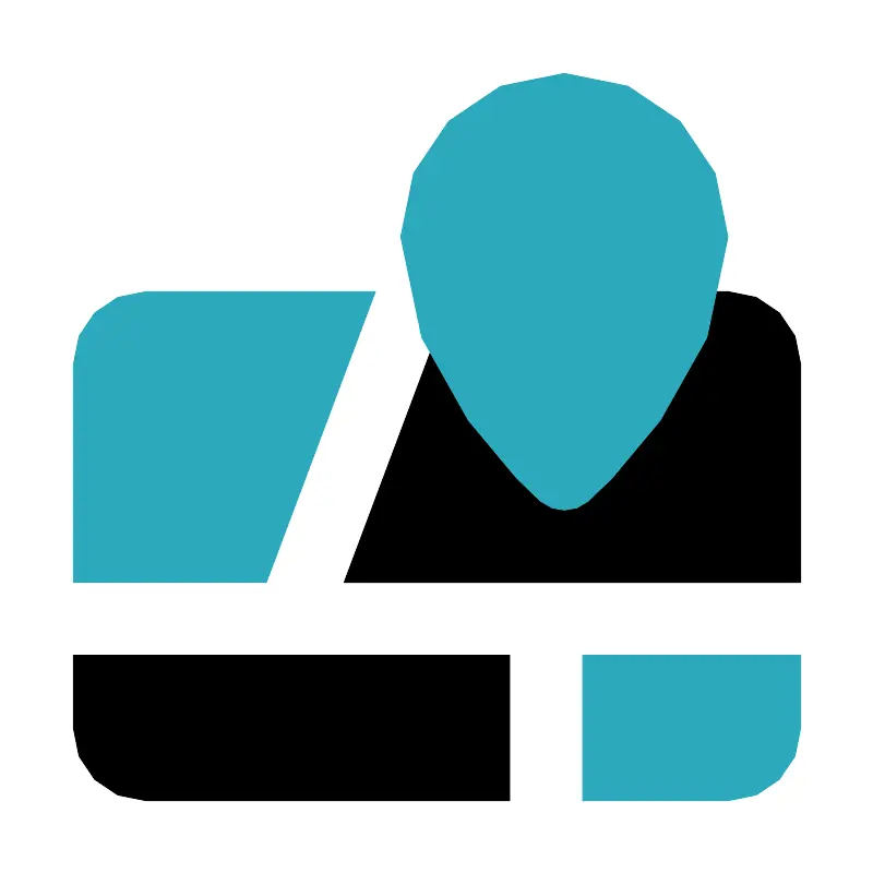 <svg fill="#000000" width="800px" height="800px" viewBox="0 0 24 24" id="maps-location-place-right" data-name="Flat Color" xmlns="http://www.w3.org/2000/svg" class="icon flat-color"><path id="primary" d="M9.44,16l3-8H20a2,2,0,0,1,2,2v6ZM2,18v2a2,2,0,0,0,2,2H14V18Z" style="fill: rgb(0, 0, 0);"></path><path id="secondary" d="M7.31,16H2V10A2,2,0,0,1,4,8h6.31ZM16,22h4a2,2,0,0,0,2-2V18H16ZM11,6.5c0,3.91,3.69,7.13,3.85,7.27a1,1,0,0,0,1.3,0C16.31,13.63,20,10.41,20,6.5a4.5,4.5,0,0,0-9,0Z" style="fill: rgb(44, 169, 188);"></path></svg>