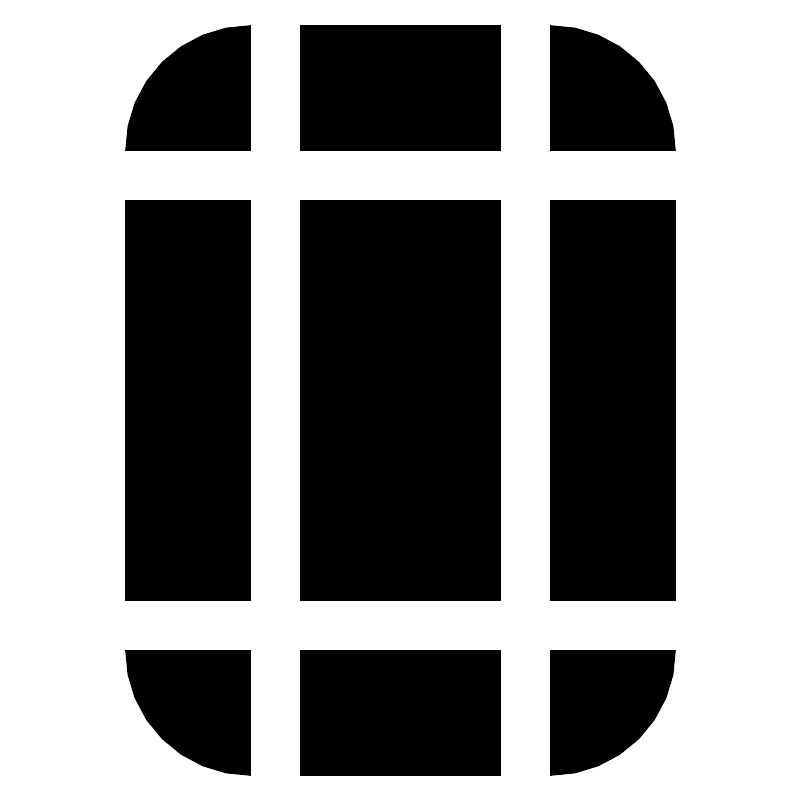 <svg fill="#000000" width="800px" height="800px" viewBox="0 0 32 32" style="fill-rule:evenodd;clip-rule:evenodd;stroke-linejoin:round;stroke-miterlimit:2;" version="1.1" xml:space="preserve" xmlns="http://www.w3.org/2000/svg" xmlns:serif="http://www.serif.com/" xmlns:xlink="http://www.w3.org/1999/xlink"><path d="M20,31l-8,0l-0,-5l8,0l0,5Zm7,-5l-5,0l0,5c1.326,0 2.598,-0.527 3.536,-1.464c0.937,-0.938 1.464,-2.21 1.464,-3.536Zm-22,0c-0,1.326 0.527,2.598 1.464,3.536c0.938,0.937 2.21,1.464 3.536,1.464l0,-5l-5,0Zm22,-18l-0,16l-5,0l0,-16l5,0Zm-7,0l0,16l-8,0l-0,-16l8,0Zm-10,-0l0,16l-5,0l0,-16l5,-0Zm0,-7c-1.326,-0 -2.598,0.527 -3.536,1.464c-0.937,0.938 -1.464,2.21 -1.464,3.536l5,0l0,-5Zm10,5l-8,0l-0,-5l8,-0l0,5Zm2,-5l0,5l5,0c0,-1.326 -0.527,-2.598 -1.464,-3.536c-0.938,-0.937 -2.21,-1.464 -3.536,-1.464Z"/><g id="Icon"/></svg>