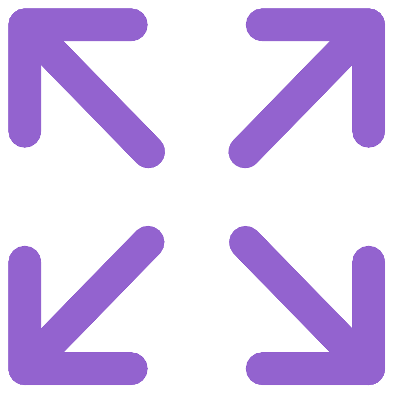 <svg width="800px" height="800px" viewBox="0 0 48 48" xmlns="http://www.w3.org/2000/svg"><title>70 Basic icons by Xicons.co</title><path d="M3,18a2,2,0,0,1-2-2V3A2,2,0,0,1,3,1H16a2,2,0,0,1,0,4H5V16A2,2,0,0,1,3,18Z" fill="#9363cf"/><path d="M45,18a2,2,0,0,1-2-2V5H32a2,2,0,0,1,0-4H45a2,2,0,0,1,2,2V16A2,2,0,0,1,45,18Z" fill="#9363cf"/><path d="M16,47H3a2,2,0,0,1-2-2V32a2,2,0,0,1,4,0V43H16A2,2,0,0,1,16,47Z" fill="#9363cf"/><path d="M45,47H32a2,2,0,0,1,0-4H43V32a2,2,0,0,1,4,0V45A2,2,0,0,1,45,47Z" fill="#9363cf"/><path d="M18.11,20.5a2,2,0,0,1-1.43-.6L1.57,4.4A2,2,0,0,1,4.43,1.6L19.54,17.1A2,2,0,0,1,18.11,20.5Z" fill="#9363cf"/><path d="M29.89,20.5a2,2,0,0,1-1.43-3.4L43.57,1.6A2,2,0,1,1,46.43,4.4L31.32,19.9A2,2,0,0,1,29.89,20.5Z" fill="#9363cf"/><path d="M45,47a2,2,0,0,1-1.43-.6L28.46,30.9a2,2,0,0,1,2.86-2.79L46.43,43.6A2,2,0,0,1,45,47Z" fill="#9363cf"/><path d="M3,47a2,2,0,0,1-1.43-3.4L16.68,28.1a2,2,0,0,1,2.86,2.79L4.43,46.4A2,2,0,0,1,3,47Z" fill="#9363cf"/></svg>