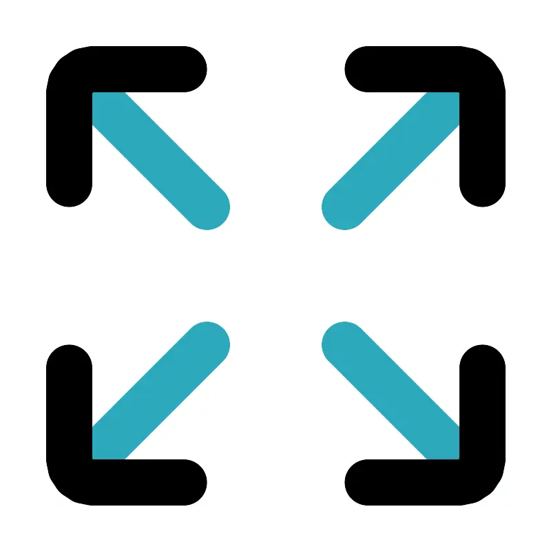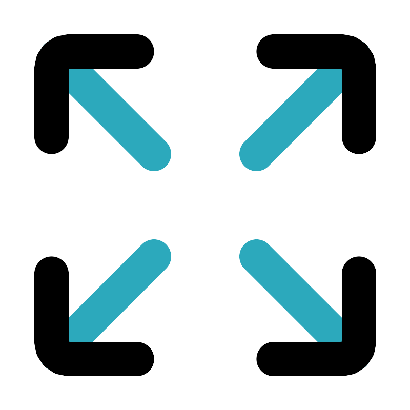 <svg fill="#000000" width="800px" height="800px" viewBox="0 0 24 24" id="maximize-size" data-name="Line Color" xmlns="http://www.w3.org/2000/svg" class="icon line-color"><path id="secondary" d="M9,9,3.29,3.29M15,9l5.71-5.71M9,15,3.29,20.71m17.42,0L15,15" style="fill: none; stroke: rgb(44, 169, 188); stroke-linecap: round; stroke-linejoin: round; stroke-width: 2;"></path><path id="primary" d="M3,8V4A1,1,0,0,1,4,3H8" style="fill: none; stroke: rgb(0, 0, 0); stroke-linecap: round; stroke-linejoin: round; stroke-width: 2;"></path><path id="primary-2" data-name="primary" d="M16,3h4a1,1,0,0,1,1,1V8" style="fill: none; stroke: rgb(0, 0, 0); stroke-linecap: round; stroke-linejoin: round; stroke-width: 2;"></path><path id="primary-3" data-name="primary" d="M8,21H4a1,1,0,0,1-1-1V16" style="fill: none; stroke: rgb(0, 0, 0); stroke-linecap: round; stroke-linejoin: round; stroke-width: 2;"></path><path id="primary-4" data-name="primary" d="M21,16v4a1,1,0,0,1-1,1H16" style="fill: none; stroke: rgb(0, 0, 0); stroke-linecap: round; stroke-linejoin: round; stroke-width: 2;"></path></svg>