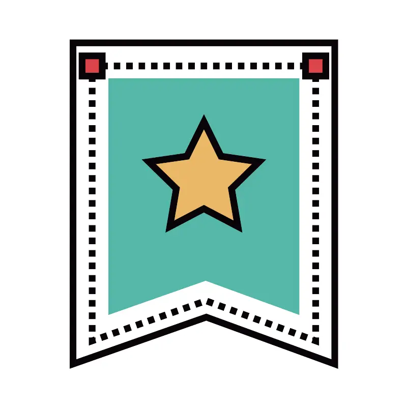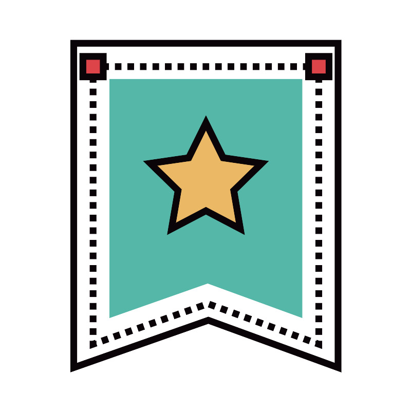 <svg width="800px" height="800px" viewBox="0 0 1024 1024" class="icon" version="1.1" xmlns="http://www.w3.org/2000/svg"><path d="M841.7 915.2L518.5 797.3 183.1 915.2V107.1h658.6z" fill="#FFFFFF" /><path d="M849.7 926.7L518.4 805.8 175.1 926.5V99.1h674.5v827.6zM191.1 115.1v788.8l327.4-115.1 315.1 115V115.1H191.1z" fill="#0A0408" /><path d="M801.6 868.3l-18.2-6.6 2.2-6.2v-6.6h2.5l0.8-2.3 6.2 2.3h6.5zM256.2 856.6l-5.3-15.1 14.8-5.2 5.3 15.1-14.8 5.2z m512.4-0.3l-14.8-5.4 5.5-15 14.8 5.4-5.5 15z m-482.8-10.2l-5.3-15.1 14.8-5.2 5.3 15.1-14.8 5.2z m453.3-0.6l-14.8-5.4 5.5-15 14.8 5.4-5.5 15z m-423.6-9.8l-5.3-15.1 14.8-5.2 5.3 15.1-14.8 5.2z m394.1-1l-14.8-5.4 5.5-15 14.8 5.4-5.5 15z m-364.5-9.4l-5.3-15.1 14.8-5.2 5.3 15.1-14.8 5.2z m334.9-1.4l-14.8-5.4 5.5-15 14.8 5.4-5.5 15z m-305.2-9.1l-5.3-15.1 14.8-5.2 5.3 15.1-14.8 5.2z m275.7-1.6l-14.8-5.4 5.5-15 14.8 5.4-5.5 15z m-246.1-8.8l-5.3-15.1 14.8-5.2 5.3 15.1-14.8 5.2z m216.6-2l-14.8-5.4 5.5-15 14.8 5.4-5.5 15zM434.1 794l-5.3-15.1 14.8-5.2 5.3 15.1-14.8 5.2z m157.4-2.4l-14.8-5.4 5.5-15 14.8 5.4-5.5 15z m-127.8-8l-5.3-15.1 14.8-5.2 5.3 15.1-14.8 5.2z m98.2-2.8l-14.8-5.4 5.5-15 14.8 5.4-5.5 15z m-68.5-7.7l-5.3-15.1 14.8-5.2 5.3 15.1-14.8 5.2z m39-3l-14.8-5.4 5.5-15 14.8 5.4-5.5 15zM223.2 868.2v-19.3h6.6l6.2-2.2 0.8 2.2h2.4v6.6l2.2 6.3zM239.2 833.2h-16v-15.7h16v15.7z m0-31.4h-16V786h16v15.8z m0-31.5h-16v-15.7h16v15.7z m0-31.4h-16v-15.7h16v15.7z m0-31.4h-16v-15.7h16v15.7z m0-31.4h-16v-15.7h16v15.7z m0-31.4h-16V629h16v15.7z m0-31.4h-16v-15.7h16v15.7z m0-31.4h-16v-15.7h16v15.7z m0-31.5h-16v-15.7h16v15.7z m0-31.4h-16v-15.7h16V519z m0-31.4h-16v-15.7h16v15.7z m0-31.4h-16v-15.7h16v15.7z m0-31.4h-16v-15.7h16v15.7z m0-31.4h-16v-15.7h16v15.7z m0-31.4h-16v-15.7h16V362z m0-31.5h-16v-15.7h16v15.7z m0-31.4h-16v-15.7h16v15.7z m0-31.4h-16V252h16v15.7z m0-31.4h-16v-15.7h16v15.7z m0-31.4h-16v-15.7h16v15.7zM223.2 157.5h16v16h-16zM770 173.5h-15.6v-16H770v16z m-31.2 0h-15.6v-16h15.6v16z m-31.2 0H692v-16h15.6v16z m-31.3 0h-15.6v-16h15.6v16z m-31.2 0h-15.6v-16h15.6v16z m-31.2 0h-15.6v-16h15.6v16z m-31.2 0H567v-16h15.6v16z m-31.3 0h-15.6v-16h15.6v16z m-31.2 0h-15.6v-16h15.6v16z m-31.2 0h-15.6v-16H489v16z m-31.3 0h-15.6v-16h15.6v16z m-31.2 0h-15.6v-16h15.6v16z m-31.2 0h-15.6v-16h15.6v16z m-31.2 0h-15.6v-16h15.6v16z m-31.3 0h-15.6v-16h15.6v16z m-31.2 0H286v-16h15.6v16z m-31.2 0h-15.6v-16h15.6v16zM785.6 157.5h16v16h-16zM801.6 833.2h-16v-15.7h16v15.7z m0-31.4h-16V786h16v15.8z m0-31.5h-16v-15.7h16v15.7z m0-31.4h-16v-15.7h16v15.7z m0-31.4h-16v-15.7h16v15.7z m0-31.4h-16v-15.7h16v15.7z m0-31.4h-16V629h16v15.7z m0-31.4h-16v-15.7h16v15.7z m0-31.4h-16v-15.7h16v15.7z m0-31.5h-16v-15.7h16v15.7z m0-31.4h-16v-15.7h16V519z m0-31.4h-16v-15.7h16v15.7z m0-31.4h-16v-15.7h16v15.7z m0-31.4h-16v-15.7h16v15.7z m0-31.4h-16v-15.7h16v15.7z m0-31.4h-16v-15.7h16V362z m0-31.5h-16v-15.7h16v15.7z m0-31.4h-16v-15.7h16v15.7z m0-31.4h-16V252h16v15.7z m0-31.4h-16v-15.7h16v15.7z m0-31.4h-16v-15.7h16v15.7z" fill="#0A0408" /><path d="M752.2 791.2l-235.4-85.9-244.2 85.9V196.6h479.6z" fill="#55B7A8" /><path d="M512.4 305.7l42.9 86.8 95.8 13.9-69.4 67.6 16.4 95.5-85.7-45.1-85.7 45.1 16.4-95.5-69.4-67.6 95.8-13.9z" fill="#EBB866" /><path d="M608.7 584.1l-96.3-50.6-96.3 50.6 18.4-107.3-77.9-76 107.7-15.7 48.2-97.6 48.2 97.6 107.7 15.7-77.9 76 18.2 107.3z m-96.3-68.7l75.1 39.5-14.3-83.6 60.7-59.2-83.9-12.2-37.5-76.1-37.5 76.1-84.1 12.1 60.7 59.2-14.3 83.6 75.1-39.4z" fill="#0A0408" /><path d="M205.7 140h50.9v50.9h-50.9z" fill="#DC444A" /><path d="M264.6 198.9h-66.9V132h66.9v66.9z m-50.9-16h34.9V148h-34.9v34.9z" fill="#0A0408" /><path d="M768.2 140h50.9v50.9h-50.9z" fill="#DC444A" /><path d="M827.1 198.9h-66.9V132h66.9v66.9z m-50.9-16h34.9V148h-34.9v34.9z" fill="#0A0408" /></svg>
