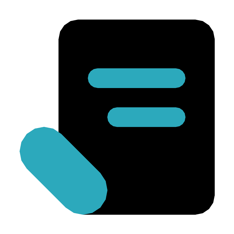 <svg fill="#000000" width="800px" height="800px" viewBox="0 0 24 24" id="medical-receipt-left-3" data-name="Flat Color" xmlns="http://www.w3.org/2000/svg" class="icon flat-color"><path id="primary" d="M6,4V19.49L8.51,22H20a2,2,0,0,0,2-2V4a2,2,0,0,0-2-2H8A2,2,0,0,0,6,4Z" style="fill: rgb(0, 0, 0);"></path><path id="secondary" d="M10.27,17.73a2.52,2.52,0,0,1,0,3.54h0a2.52,2.52,0,0,1-3.54,0l-4-4a2.52,2.52,0,0,1,0-3.54h0a2.52,2.52,0,0,1,3.54,0ZM10,9h8a1,1,0,0,0,0-2H10a1,1,0,0,0,0,2Zm2,4h6a1,1,0,0,0,0-2H12a1,1,0,0,0,0,2Z" style="fill: rgb(44, 169, 188);"></path></svg>