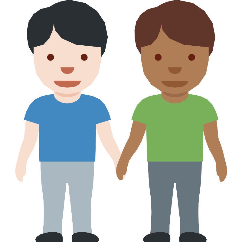 Мужчины держащиеся за руки с разным тоном кожи (Men holding hands light skin tone medium dark skin tone)