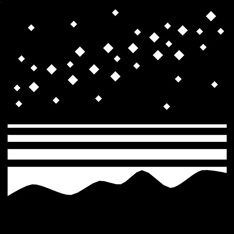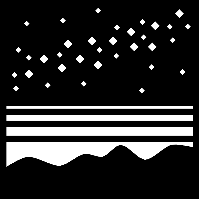 <svg width="800px" height="800px" viewBox="0 0 64 64" xmlns="http://www.w3.org/2000/svg" xmlns:xlink="http://www.w3.org/1999/xlink" aria-hidden="true" role="img" class="iconify iconify--emojione-monotone" preserveAspectRatio="xMidYMid meet"><path d="M0 0v64h64V0H0m55.25 46.531c-2.45.469-6.227 4.908-8.719 4.844c-2.283-.059-5.467-4.878-7.75-4.844c-1.746.025-4.105 3.51-5.813 3.875c-1.44.31-4.355-1.188-5.813-.969c-2.143.321-5.595 3.661-7.75 3.875c-2.748.272-7.908-3.179-10.656-2.906c-1.588.158-5.042 2.187-6.749 3.243v-8.087h60v1.752c-1.751-.371-5.326-1.055-6.75-.783M2 43.625v-2.924h60v2.924H2m0-4.844v-1.938h60v1.938H2m0-3.859v-.984h60v.984H2m53.534-23.024l.969.969l-.969.969l-.969-.969l.969-.969M53.597 8.57l.969-.969l.969.969l-.969.969l-.969-.969m2.622-4.179l1.453-1.453l1.453 1.453l-1.453 1.453l-1.453-1.453m2.422 17.723l.969.969l-.969.969l-.969-.969l.969-.969m.726-13.606l.969-.969l.969.969l-.969.969l-.969-.969M48.953 16.5L47.5 15.047l1.453-1.453l1.453 1.453l-1.453 1.453m.727 5.086l-.969.969l-.969-.969l.969-.969l.969.969m.242-11.867l-1.453-1.453l1.453-1.453l1.453 1.453l-1.453 1.453m-6.781 3.875l1.453 1.453l-1.453 1.453l-1.453-1.453l1.453-1.453m-2.422-3.391l1.453-1.453l1.453 1.453l-1.453 1.453l-1.453-1.453m4.844 17.922l.969.969l-.969.969l-.969-.969l.969-.969m.566-15.196l-.969-.969l.969-.969l.969.969l-.969.969m-1.293-5.874l.969-.969l.969.969l-.969.969l-.969-.969m-7.508 9.929l.969.969l-.969.969l-.969-.969l.969-.969m-2.422-3.875l1.453-1.453l1.453 1.453l-1.453 1.453l-1.453-1.453m2.664-3.39l-.968-.969l.969-.969l.969.969l-.97.969m-6.539 3.39l-1.453 1.453l-1.453-1.453l1.453-1.453l1.453 1.453m-.484-9.687l.969-.969l.969.969l-.969.969l-.969-.969M32 16.984l-.969-.969l.969-.968l.969.969l-.969.968m.969 3.875l-1.453 1.453l-1.453-1.453l1.453-1.453l1.453 1.453m-6.055 5.086l.969.969l-.969.969l-.969-.969l.969-.969m-1.211-5.57l-1.453-1.453l1.453-1.453l1.453 1.453l-1.453 1.453m-5.57-2.802l-.969.969l-.969-.969l.969-.969l.969.969M19.164 6.57l.969-.969l.969.969l-.969.969l-.969-.969m.727 13.805l1.453 1.453l-1.453 1.453l-1.453-1.453l1.453-1.453m.484-6.286l1.453-1.453l1.453 1.453l-1.453 1.453l-1.453-1.453M15.289 26.43l.969.969l-.969.969l-.969-.969l.969-.969m-1.211-6.055l-1.453-1.453l1.453-1.453l1.453 1.453l-1.453 1.453M8.508 8.508l-.969-.969l.969-.969l.969.969l-.969.969m1.695 10.034l-.969.969l-.969-.969l.969-.969l.969.969m-.969 3.771l1.453 1.453l-1.453 1.453l-1.453-1.453l1.453-1.453m-4.117 5.085l.969.969l-.969.969l-.969-.969l.969-.969m-1.453-3.39l.969-.969l.969.969l-.969.969l-.969-.969m2.18-7.024l-.969-.969l.969-.969l.969.969l-.969.969" fill="#000000"></path></svg>