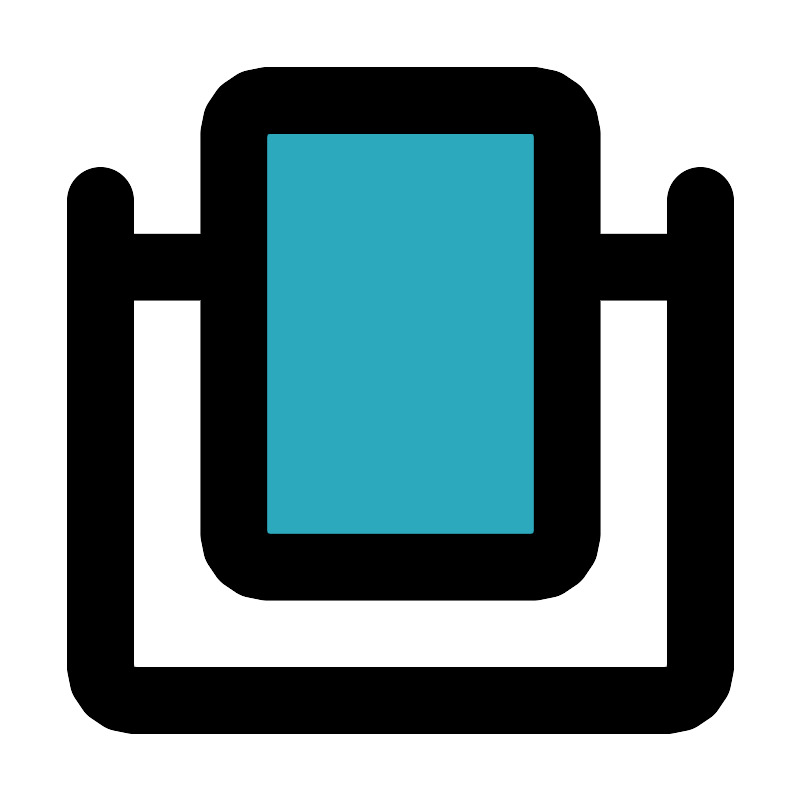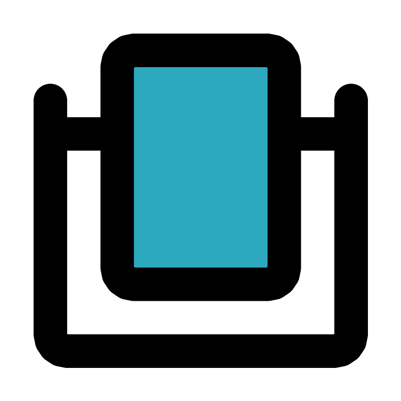 <svg fill="#000000" width="800px" height="800px" viewBox="0 0 24 24" id="mirror-3" data-name="Flat Line" xmlns="http://www.w3.org/2000/svg" class="icon flat-line"><rect id="secondary" x="7" y="3" width="10" height="14" rx="1" style="fill: rgb(44, 169, 188); stroke-width: 2;"></rect><path id="primary" d="M3,6V20a1,1,0,0,0,1,1H20a1,1,0,0,0,1-1V6" style="fill: none; stroke: rgb(0, 0, 0); stroke-linecap: round; stroke-linejoin: round; stroke-width: 2;"></path><path id="primary-2" data-name="primary" d="M21,8H17M3,8H7M7,4V16a1,1,0,0,0,1,1h8a1,1,0,0,0,1-1V4a1,1,0,0,0-1-1H8A1,1,0,0,0,7,4Z" style="fill: none; stroke: rgb(0, 0, 0); stroke-linecap: round; stroke-linejoin: round; stroke-width: 2;"></path></svg>