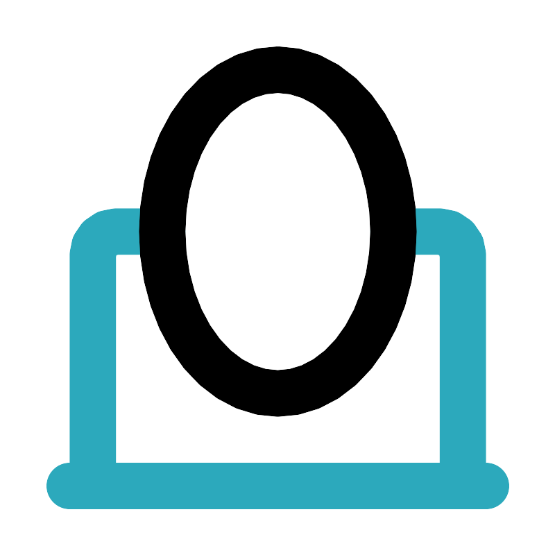 <svg fill="#000000" width="800px" height="800px" viewBox="0 0 24 24" id="mirror-5" data-name="Line Color" xmlns="http://www.w3.org/2000/svg" class="icon line-color"><path id="secondary" d="M20,21V11a1,1,0,0,0-1-1H17" style="fill: none; stroke: rgb(44, 169, 188); stroke-linecap: round; stroke-linejoin: round; stroke-width: 2;"></path><path id="secondary-2" data-name="secondary" d="M7,10H5a1,1,0,0,0-1,1V21" style="fill: none; stroke: rgb(44, 169, 188); stroke-linecap: round; stroke-linejoin: round; stroke-width: 2;"></path><line id="secondary-3" data-name="secondary" x1="3" y1="21" x2="21" y2="21" style="fill: none; stroke: rgb(44, 169, 188); stroke-linecap: round; stroke-linejoin: round; stroke-width: 2;"></line><ellipse id="primary" cx="12" cy="10" rx="5" ry="7" style="fill: none; stroke: rgb(0, 0, 0); stroke-linecap: round; stroke-linejoin: round; stroke-width: 2;"></ellipse></svg>