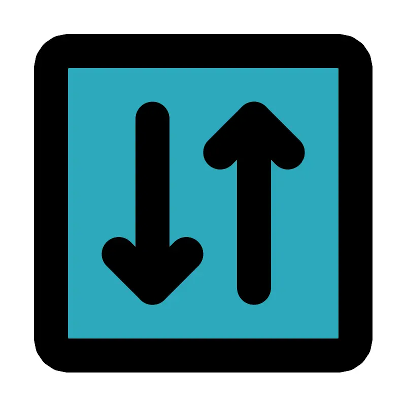 <svg fill="#000000" width="800px" height="800px" viewBox="0 0 24 24" id="mobile-data-square" data-name="Flat Line" xmlns="http://www.w3.org/2000/svg" class="icon flat-line"><rect id="secondary" x="3" y="3" width="18" height="18" rx="1" style="fill: rgb(44, 169, 188); stroke-width: 2;"></rect><polyline id="primary" points="7 15 9 17 11 15" style="fill: none; stroke: rgb(0, 0, 0); stroke-linecap: round; stroke-linejoin: round; stroke-width: 2;"></polyline><polyline id="primary-2" data-name="primary" points="17 9 15 7 13 9" style="fill: none; stroke: rgb(0, 0, 0); stroke-linecap: round; stroke-linejoin: round; stroke-width: 2;"></polyline><path id="primary-3" data-name="primary" d="M9,7V17m6,0V7m6,13V4a1,1,0,0,0-1-1H4A1,1,0,0,0,3,4V20a1,1,0,0,0,1,1H20A1,1,0,0,0,21,20Z" style="fill: none; stroke: rgb(0, 0, 0); stroke-linecap: round; stroke-linejoin: round; stroke-width: 2;"></path></svg>