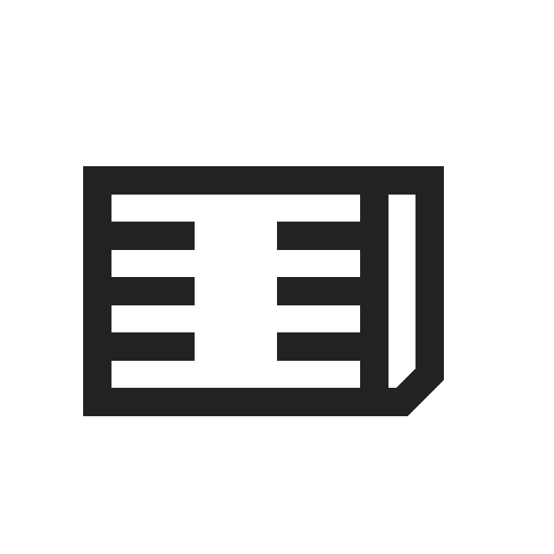 <path d="M 3 6 L 3 15 L 14 15 L 14.707031 15 L 16 13.707031 L 16 6 L 14 6 L 3 6 z M 4 7 L 13 7 L 13 8 L 10 8 L 10 9 L 13 9 L 13 10 L 10 10 L 10 11 L 13 11 L 13 12 L 10 12 L 10 13 L 13 13 L 13 14 L 4 14 L 4 13 L 7 13 L 7 12 L 4 12 L 4 11 L 7 11 L 7 10 L 4 10 L 4 9 L 7 9 L 7 8 L 4 8 L 4 7 z M 14 7 L 15 7 L 15 13.292969 L 14.292969 14 L 14 14 L 14 7 z " style="fill:#222222; fill-opacity:1; stroke:none; stroke-width:0px;"/>
