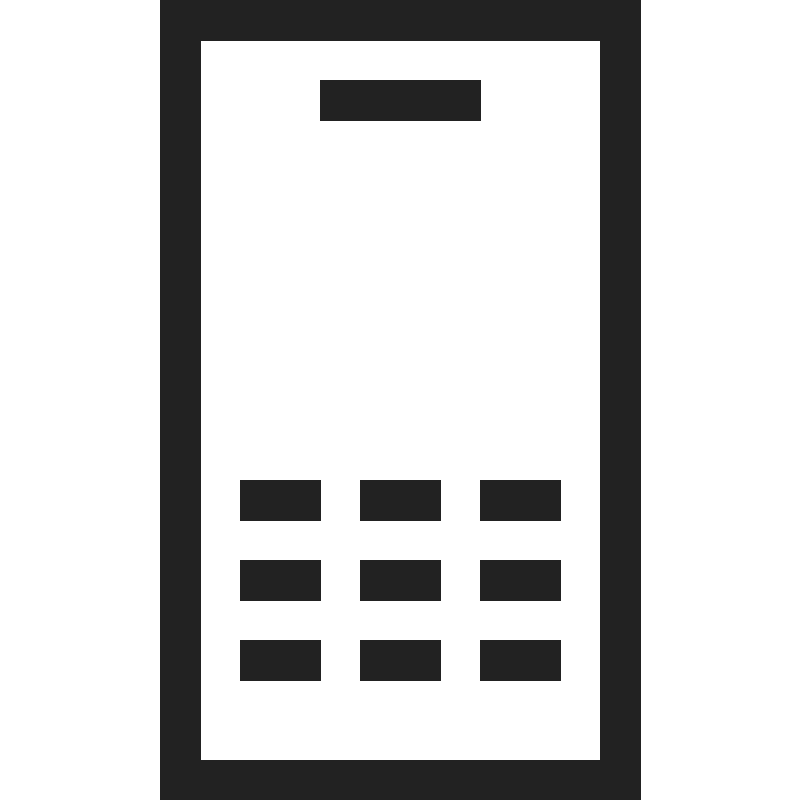 <path d="M 4 0 L 4 20 L 16 20 L 16 0 L 4 0 z M 5 1 L 15 1 L 15 19 L 5 19 L 5 1 z M 8 2 L 8 3 L 12 3 L 12 2 L 8 2 z M 6 12 L 6 13 L 8 13 L 8 12 L 6 12 z M 9 12 L 9 13 L 11 13 L 11 12 L 9 12 z M 12 12 L 12 13 L 14 13 L 14 12 L 12 12 z M 6 14 L 6 15 L 8 15 L 8 14 L 6 14 z M 9 14 L 9 15 L 11 15 L 11 14 L 9 14 z M 12 14 L 12 15 L 14 15 L 14 14 L 12 14 z M 6 16 L 6 17 L 8 17 L 8 16 L 6 16 z M 9 16 L 9 17 L 11 17 L 11 16 L 9 16 z M 12 16 L 12 17 L 14 17 L 14 16 L 12 16 z" style="fill:#222222; fill-opacity:1; stroke:none; stroke-width:0px;"/>