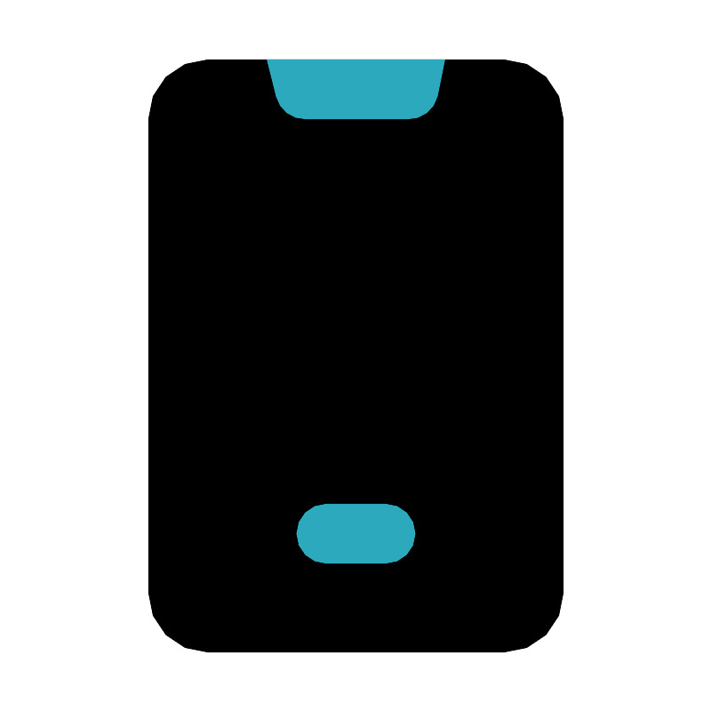 <svg fill="#000000" width="800px" height="800px" viewBox="0 0 24 24" id="mobile-phone" data-name="Flat Color" xmlns="http://www.w3.org/2000/svg" class="icon flat-color"><rect id="primary" x="5" y="2" width="14" height="20" rx="2" style="fill: rgb(0, 0, 0);"></rect><path id="secondary" d="M13,19H11a1,1,0,0,1,0-2h2a1,1,0,0,1,0,2ZM9,2l.31,1.24a1,1,0,0,0,1,.76h3.44a1,1,0,0,0,1-.76L15,2Z" style="fill: rgb(44, 169, 188);"></path></svg>