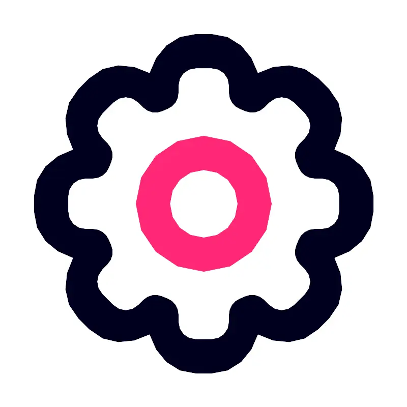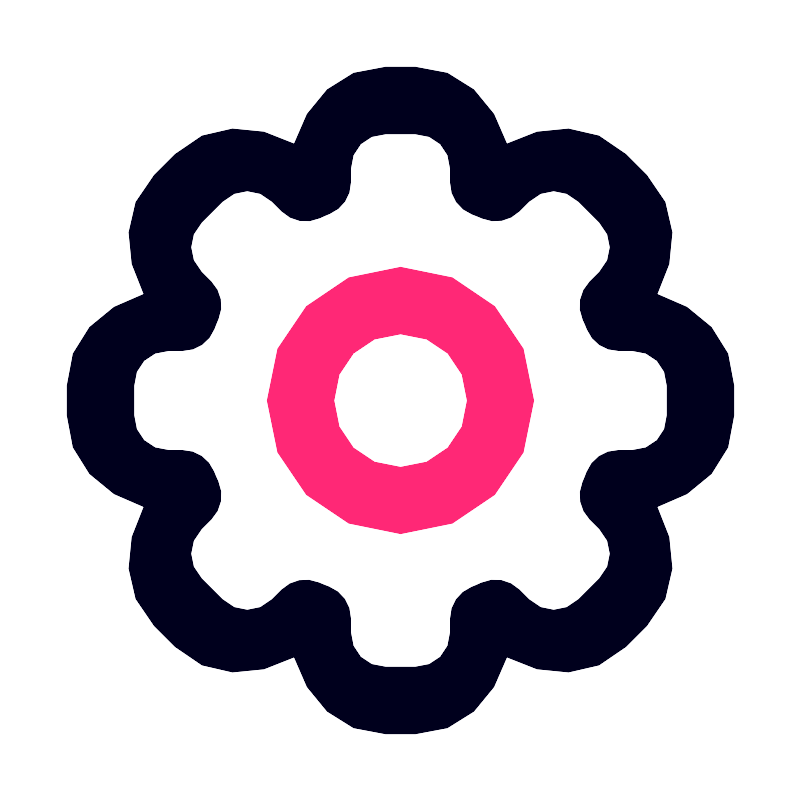 <svg width="800px" height="800px" viewBox="0 0 6.3499998 6.3499998" id="svg8" version="1.1" xmlns="http://www.w3.org/2000/svg" xmlns:cc="http://creativecommons.org/ns#" xmlns:dc="http://purl.org/dc/elements/1.1/" xmlns:rdf="http://www.w3.org/1999/02/22-rdf-syntax-ns#" xmlns:svg="http://www.w3.org/2000/svg"><defs id="defs2"/><path d="m 3.1757813,2.1171875 c -0.5813565,0 -1.0585938,0.4772372 -1.0585938,1.0585938 0,0.5813565 0.4772373,1.0566406 1.0585938,1.0566406 0.5813565,-1e-7 1.0566406,-0.4752841 1.0566406,-1.0566406 -2e-7,-0.5813565 -0.4752841,-1.0585938 -1.0566406,-1.0585938 z m 0,0.5292968 c 0.2953736,0 0.5292968,0.2339233 0.5292968,0.5292969 0,0.2953736 -0.2339232,0.5292968 -0.5292968,0.5292968 -0.2953736,0 -0.5292969,-0.2339232 -0.5292969,-0.5292968 0,-0.2953736 0.2339233,-0.5292969 0.5292969,-0.5292969 z" id="path1863" style="color:#000000;font-style:normal;font-variant:normal;font-weight:normal;font-stretch:normal;font-size:medium;line-height:normal;font-family:sans-serif;font-variant-ligatures:normal;font-variant-position:normal;font-variant-caps:normal;font-variant-numeric:normal;font-variant-alternates:normal;font-feature-settings:normal;text-indent:0;text-align:start;text-decoration:none;text-decoration-line:none;text-decoration-style:solid;text-decoration-color:#000000;letter-spacing:normal;word-spacing:normal;text-transform:none;writing-mode:lr-tb;direction:ltr;text-orientation:mixed;dominant-baseline:auto;baseline-shift:baseline;text-anchor:start;white-space:normal;shape-padding:0;clip-rule:nonzero;display:inline;overflow:visible;visibility:visible;opacity:1;isolation:auto;mix-blend-mode:normal;color-interpolation:sRGB;color-interpolation-filters:linearRGB;solid-color:#000000;solid-opacity:1;vector-effect:none;fill:#ff2876;fill-opacity:1;fill-rule:nonzero;stroke:none;stroke-width:0.52916664;stroke-linecap:round;stroke-linejoin:round;stroke-miterlimit:4;stroke-dasharray:none;stroke-dashoffset:204.09448242;stroke-opacity:1;paint-order:stroke fill markers;color-rendering:auto;image-rendering:auto;shape-rendering:auto;text-rendering:auto;enable-background:accumulate"/><path d="m 3.0576947,0.52916665 c -0.366361,0 -0.6282933,0.2735658 -0.7260541,0.61029865 C 2.0244302,0.97049867 1.6460313,0.96207812 1.3869954,1.2211141 L 1.2211141,1.3869954 C 0.96207812,1.6460313 0.97049867,2.0244301 1.1394653,2.3316406 0.80273245,2.4294014 0.52916665,2.6913336 0.52916665,3.0576946 v 0.2346106 c 0,0.3663609 0.2735658,0.6282931 0.61029865,0.726054 -0.16886958,0.30719 -0.17734508,0.6856513 0.081649,0.9446453 l 0.1658813,0.1658813 c 0.2590359,0.2590361 0.6374347,0.2506157 0.9446452,0.081649 0.097761,0.3367331 0.3596932,0.6102987 0.726054,0.6102987 h 0.2346108 c 0.3663609,0 0.6282931,-0.2735656 0.7260539,-0.6102986 0.3071899,0.1688698 0.6856512,0.1773454 0.944645,-0.081649 L 5.1288858,4.9630045 c 0.258994,-0.258994 0.2505186,-0.6374553 0.081649,-0.9446453 0.3367333,-0.097761 0.610299,-0.359693 0.610299,-0.7260539 V 3.0576946 c 0,-0.366361 -0.2735657,-0.6282932 -0.610299,-0.726054 C 5.3795015,2.0244301 5.3879219,1.6460312 5.1288858,1.3869954 L 4.9630045,1.2211141 C 4.7039687,0.96207812 4.3255698,0.97049875 4.0183592,1.1394653 3.9205984,0.80273245 3.6586662,0.52916665 3.2923053,0.52916665 Z m 0,0.52916665 h 0.2346106 c 0.1596094,0 0.2795696,0.1199602 0.2795696,0.2795695 v 0.109554 a 0.26460978,0.26460978 0 0 0 0.1720827,0.2480469 c 0.026864,0.010056 0.053302,0.020543 0.079582,0.032039 A 0.26460978,0.26460978 0 0 0 4.116545,1.6722486 l 0.076998,-0.076998 c 0.1128866,-0.1128863 0.2824387,-0.1128861 0.3953248,0 l 0.1658813,0.1658812 c 0.1128863,0.1128862 0.1128863,0.2824386 0,0.3953249 l -0.077515,0.077515 a 0.26460978,0.26460978 0 0 0 -0.053227,0.2981734 c 0.012086,0.026115 0.023458,0.052332 0.034107,0.079065 A 0.26460978,0.26460978 0 0 0 4.9040933,2.7781249 H 5.012097 c 0.1596096,0 0.2795695,0.1199602 0.2795695,0.2795697 v 0.2346106 c 0,0.1596094 -0.1199599,0.2795696 -0.2795695,0.2795696 H 4.902543 A 0.26460978,0.26460978 0 0 0 4.6544961,3.7439575 c -0.010057,0.026864 -0.020542,0.053302 -0.032039,0.079582 a 0.26460978,0.26460978 0 0 0 0.055294,0.2930054 l 0.076998,0.076998 c 0.1128866,0.1128861 0.1128866,0.2824387 0,0.3953248 L 4.588867,4.7547483 c -0.1128858,0.1128866 -0.2824387,0.1128866 -0.3953248,0 L 4.1160278,4.6772336 A 0.26460978,0.26460978 0 0 0 3.8178549,4.6240066 c -0.026114,0.012086 -0.052332,0.023458 -0.079065,0.034107 a 0.26460978,0.26460978 0 0 0 -0.166915,0.2459796 v 0.1080037 c 0,0.1596096 -0.1199602,0.2795695 -0.2795696,0.2795695 H 3.0576947 c -0.1596095,0 -0.2795697,-0.1199599 -0.2795697,-0.2795695 V 4.902543 A 0.26460978,0.26460978 0 0 0 2.6060426,4.6544961 c -0.026864,-0.010056 -0.053302,-0.020543 -0.079582,-0.032039 a 0.26460978,0.26460978 0 0 0 -0.2930054,0.055294 l -0.076998,0.076998 c -0.1128862,0.1128866 -0.2824386,0.1128866 -0.3953249,0 L 1.5952515,4.588867 c -0.112886,-0.1128858 -0.112886,-0.2824387 0,-0.3953248 l 0.077515,-0.077514 a 0.26460978,0.26460978 0 0 0 0.053227,-0.298173 C 1.7139075,3.7917409 1.7025344,3.7655228 1.6918865,3.7387896 A 0.26460978,0.26460978 0 0 0 1.4459066,3.5718748 H 1.3379028 c -0.1596093,0 -0.2795695,-0.1199602 -0.2795695,-0.2795696 V 3.0576946 c 0,-0.1596095 0.1199602,-0.2795697 0.2795695,-0.2795697 h 0.109554 A 0.26460978,0.26460978 0 0 0 1.6955037,2.6060425 c 0.010056,-0.026864 0.020543,-0.053302 0.032039,-0.079582 A 0.26460978,0.26460978 0 0 0 1.6722493,2.2334553 l -0.076998,-0.076998 c -0.112886,-0.112886 -0.112886,-0.2824387 0,-0.3953246 L 1.7611328,1.5952515 c 0.1128859,-0.1128861 0.2824387,-0.1128861 0.3953247,0 l 0.077515,0.077515 a 0.26460978,0.26460978 0 0 0 0.2992065,0.05271 c 0.02611,-0.012235 0.052844,-0.023829 0.079582,-0.034623 A 0.26460978,0.26460978 0 0 0 2.778125,1.4453898 v -0.107487 c 0,-0.1596093 0.1199602,-0.2795695 0.2795697,-0.2795695 z" id="circle1865" style="color:#000000;font-style:normal;font-variant:normal;font-weight:normal;font-stretch:normal;font-size:medium;line-height:normal;font-family:sans-serif;font-variant-li