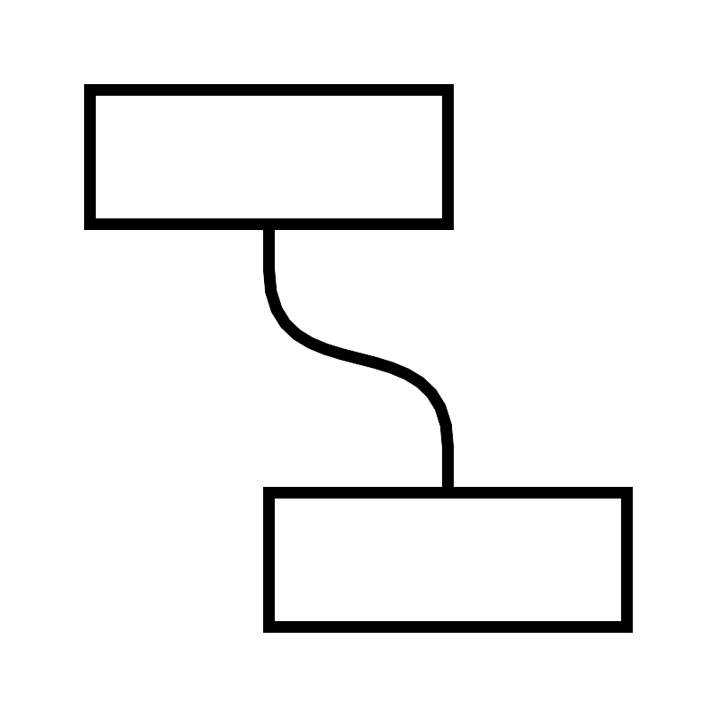<svg width="800px" height="800px" viewBox="0 0 64 64" xmlns="http://www.w3.org/2000/svg" fill="none" stroke="#000000"><path d="M24 20v4c0 12 16 4 16 16v4"/><rect x="24" y="44" width="32" height="12"/><rect x="8" y="8" width="32" height="12"/></svg>