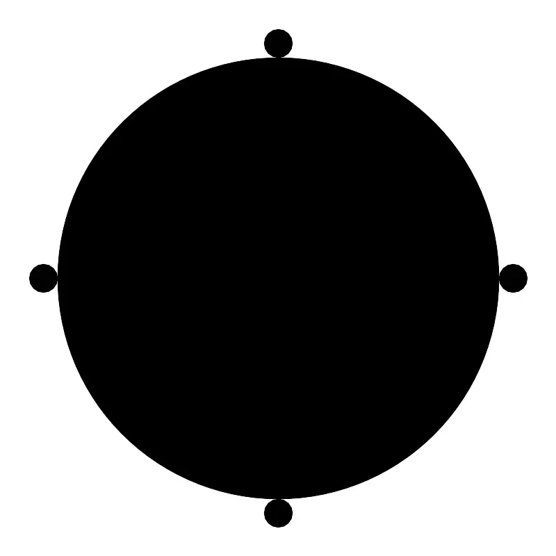 <svg width="800px" height="800px" viewBox="0 0 48 48" xmlns="http://www.w3.org/2000/svg"><defs><style>.a,.b,.c{fill:none;stroke:#000000;}.a{stroke-miterlimit:10;}.b,.c{stroke-linejoin:round;}.c{stroke-linecap:round;}.d{fill:#000000;}</style></defs><circle class="a" cx="24" cy="24" r="10.9893"/><circle class="a" cx="24" cy="24" r="19.0486"/><polyline class="b" points="19.869 13.646 19.898 8.221 17.76 6.232"/><polyline class="b" points="28.131 13.646 28.102 8.221 30.24 6.232"/><circle class="a" cx="24" cy="3.7257" r="1.2257"/><polyline class="b" points="13.646 28.131 8.221 28.102 6.232 30.24"/><polyline class="b" points="13.646 19.869 8.221 19.898 6.232 17.76"/><circle class="a" cx="3.7257" cy="24" r="1.2257"/><polyline class="b" points="28.131 34.354 28.102 39.779 30.24 41.768"/><polyline class="b" points="19.869 34.354 19.898 39.779 17.76 41.768"/><circle class="a" cx="24" cy="44.2743" r="1.2257"/><polyline class="b" points="34.354 19.869 39.779 19.898 41.768 17.76"/><polyline class="b" points="34.354 28.131 39.779 28.102 41.768 30.24"/><circle class="a" cx="44.2743" cy="24" r="1.2257"/><path class="c" d="M31.117,27.3423A7.6418,7.6418,0,1,1,20.6608,16.883"/><path class="d" d="M25.3758,18.2325l.978,3.0086h3.1639l-2.5595,1.86.9781,3.0086-2.5595-1.86-2.5595,1.86.9781-3.0086-2.5595-1.86H24.4l.976-3.0086m0-1.0494a1.05,1.05,0,0,0-.998.7252l-.7419,2.2834H21.2348a1.05,1.05,0,0,0-.617,1.8984L22.56,23.5015l-.7419,2.2835a1.0494,1.0494,0,0,0,1.615,1.1732l1.9425-1.4114,1.9424,1.4114a1.0494,1.0494,0,0,0,1.615-1.1732l-.7419-2.2835L30.1337,22.09a1.05,1.05,0,0,0-.617-1.8984h-2.401l-.742-2.2834a1.05,1.05,0,0,0-.9979-.7252Z"/></svg>