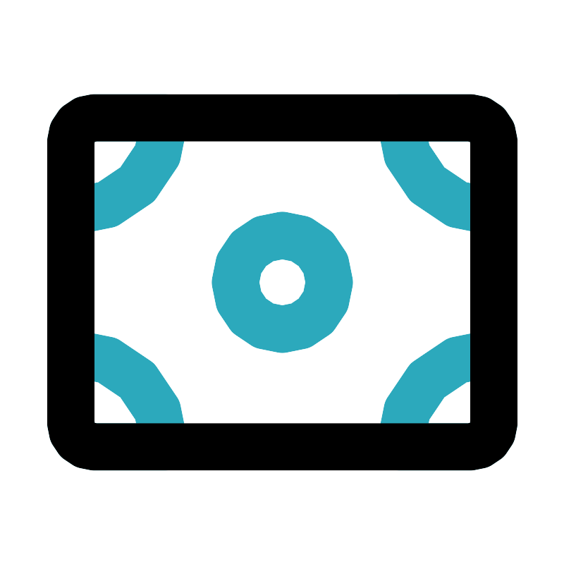 <svg fill="#000000" width="800px" height="800px" viewBox="0 0 24 24" id="money" data-name="Line Color" xmlns="http://www.w3.org/2000/svg" class="icon line-color"><path id="secondary" d="M21,6a1,1,0,0,0-1-1H17a4,4,0,0,0,4,4h0ZM3,9H3A4,4,0,0,0,7,5H4A1,1,0,0,0,3,6Zm18,6h0a4,4,0,0,0-4,4h3a1,1,0,0,0,1-1ZM3,18a1,1,0,0,0,1,1H7a4,4,0,0,0-4-4H3Zm9-8a2,2,0,1,0,2,2A2,2,0,0,0,12,10Z" style="fill: none; stroke: rgb(44, 169, 188); stroke-linecap: round; stroke-linejoin: round; stroke-width: 2;"></path><rect id="primary" x="3" y="5" width="18" height="14" rx="1" style="fill: none; stroke: rgb(0, 0, 0); stroke-linecap: round; stroke-linejoin: round; stroke-width: 2;"></rect></svg>