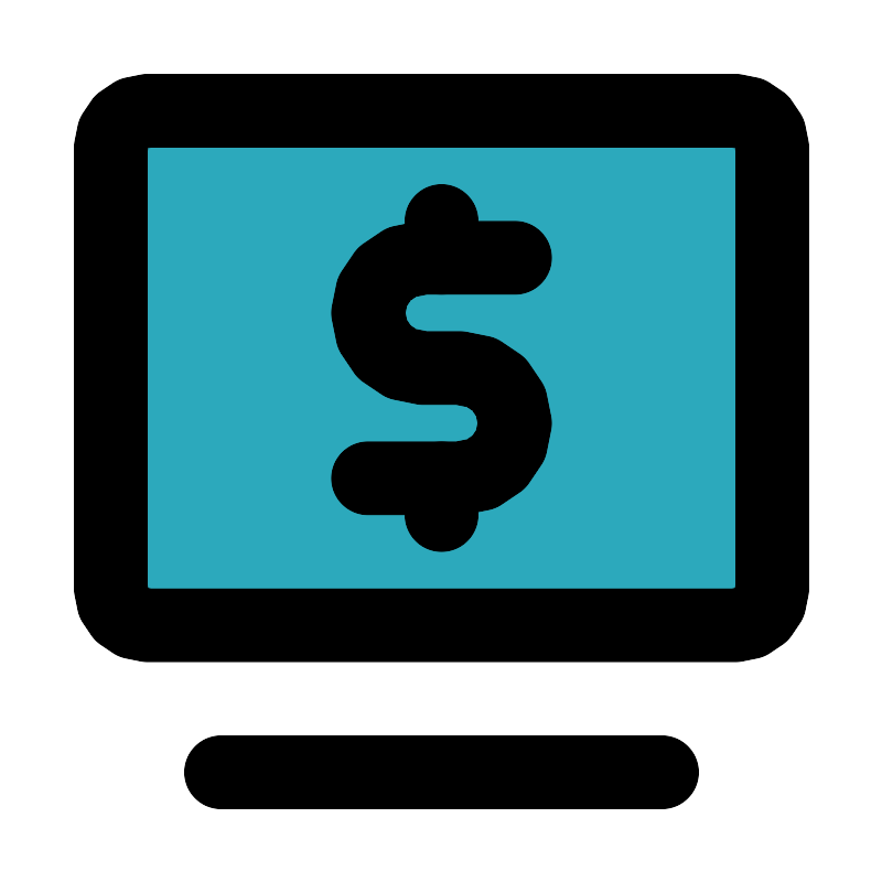 <svg fill="#000000" width="800px" height="800px" viewBox="0 0 24 24" id="money-alt-1" data-name="Flat Line" xmlns="http://www.w3.org/2000/svg" class="icon flat-line"><rect id="secondary" x="3" y="3" width="18" height="14" rx="1" style="fill: rgb(44, 169, 188); stroke-width: 2;"></rect><path id="primary" d="M14,7H11.5A1.5,1.5,0,0,0,10,8.5h0A1.5,1.5,0,0,0,11.5,10h1A1.5,1.5,0,0,1,14,11.5h0A1.5,1.5,0,0,1,12.5,13H10" style="fill: none; stroke: rgb(0, 0, 0); stroke-linecap: round; stroke-linejoin: round; stroke-width: 2;"></path><path id="primary-2" data-name="primary" d="M12,6V7m0,6v1M6,21H18m3-5V4a1,1,0,0,0-1-1H4A1,1,0,0,0,3,4V16a1,1,0,0,0,1,1H20A1,1,0,0,0,21,16Z" style="fill: none; stroke: rgb(0, 0, 0); stroke-linecap: round; stroke-linejoin: round; stroke-width: 2;"></path></svg>
