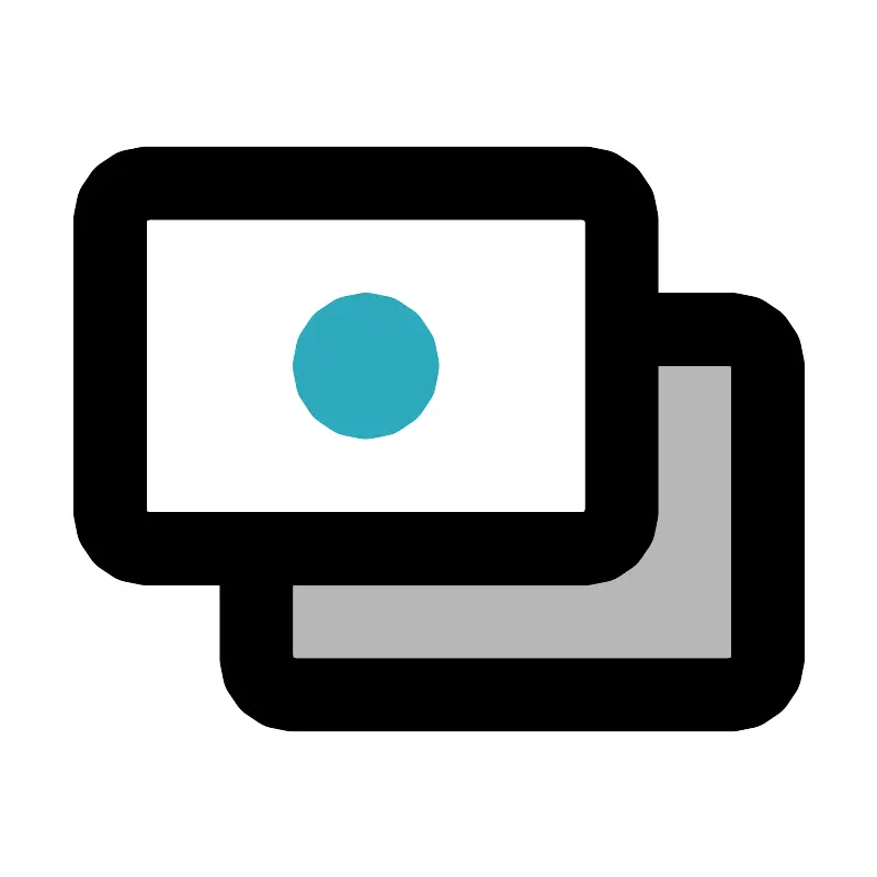 <svg width="800px" height="800px" viewBox="0 0 24 24" id="money-alt" xmlns="http://www.w3.org/2000/svg" class="icon multi-color"><title style="stroke-width: 2;">money alt</title><path id="tertiary-fill" d="M21,10v8a1,1,0,0,1-1,1H8a1,1,0,0,1-1-1V15h9a1,1,0,0,0,1-1V9h3A1,1,0,0,1,21,10Z" style="fill: #b7b7b7; stroke-width: 2;"></path><path id="primary-stroke" d="M21,10v8a1,1,0,0,1-1,1H8a1,1,0,0,1-1-1V15h9a1,1,0,0,0,1-1V9h3A1,1,0,0,1,21,10ZM16,5H4A1,1,0,0,0,3,6v8a1,1,0,0,0,1,1H16a1,1,0,0,0,1-1V6A1,1,0,0,0,16,5Z" style="fill: none; stroke: rgb(0, 0, 0); stroke-linecap: round; stroke-linejoin: round; stroke-width: 2;"></path><circle id="secondary-stroke" cx="10" cy="10" r="1" style="fill: none; stroke: rgb(44, 169, 188); stroke-linecap: round; stroke-linejoin: round; stroke-width: 2;"></circle></svg>