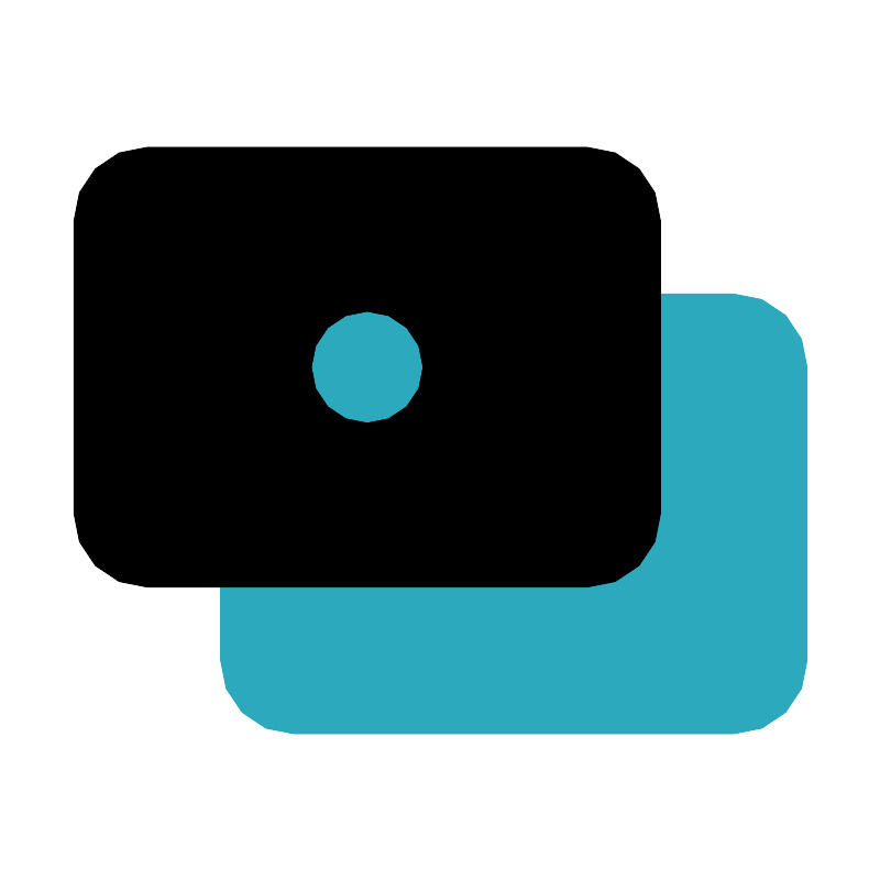 <svg fill="#000000" width="800px" height="800px" viewBox="0 0 24 24" id="money-alt" data-name="Flat Color" xmlns="http://www.w3.org/2000/svg" class="icon flat-color"><rect id="secondary" x="6" y="8" width="16" height="12" rx="2" style="fill: rgb(44, 169, 188);"></rect><rect id="primary" x="2" y="4" width="16" height="12" rx="2" style="fill: rgb(0, 0, 0);"></rect><circle id="secondary-2" data-name="secondary" cx="10" cy="10" r="1.5" style="fill: rgb(44, 169, 188);"></circle></svg>