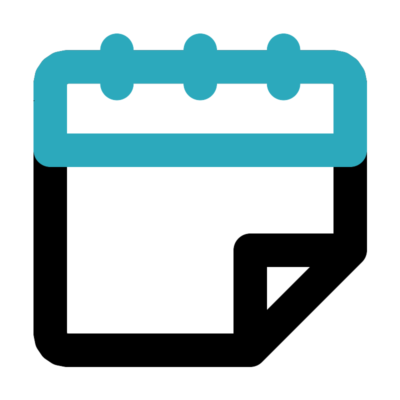 <svg fill="#000000" width="800px" height="800px" viewBox="0 0 24 24" id="month" data-name="Line Color" xmlns="http://www.w3.org/2000/svg" class="icon line-color"><path id="primary" d="M21,5V15l-6,6H4a1,1,0,0,1-1-1V5A1,1,0,0,1,4,4H20A1,1,0,0,1,21,5ZM15,15v6l6-6Z" style="fill: none; stroke: rgb(0, 0, 0); stroke-linecap: round; stroke-linejoin: round; stroke-width: 2;"></path><path id="secondary" d="M20,4H4A1,1,0,0,0,3,5V9H21V5A1,1,0,0,0,20,4ZM17,3V5M12,3V5M7,3V5" style="fill: none; stroke: rgb(44, 169, 188); stroke-linecap: round; stroke-linejoin: round; stroke-width: 2;"></path></svg>