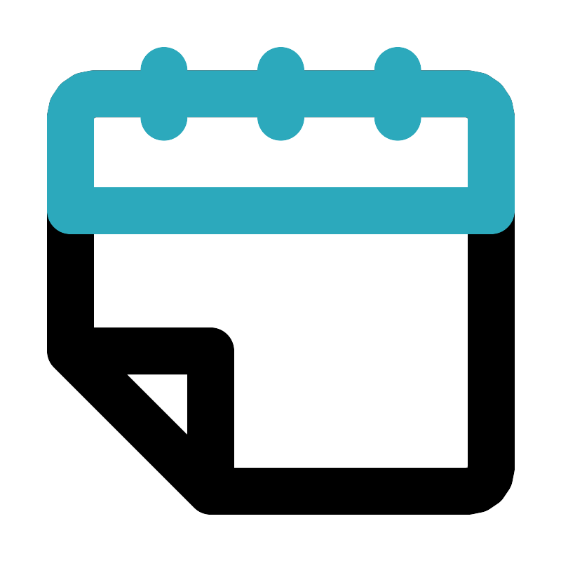 <svg fill="#000000" width="800px" height="800px" viewBox="0 0 24 24" id="month-left" data-name="Line Color" xmlns="http://www.w3.org/2000/svg" class="icon line-color"><path id="primary" d="M4,4H20a1,1,0,0,1,1,1V20a1,1,0,0,1-1,1H9L3,15V5A1,1,0,0,1,4,4ZM3,15l6,6V15Z" style="fill: none; stroke: rgb(0, 0, 0); stroke-linecap: round; stroke-linejoin: round; stroke-width: 2;"></path><path id="secondary" d="M3,5V9H21V5a1,1,0,0,0-1-1H4A1,1,0,0,0,3,5ZM7,3V5m5-2V5m5-2V5" style="fill: none; stroke: rgb(44, 169, 188); stroke-linecap: round; stroke-linejoin: round; stroke-width: 2;"></path></svg>
