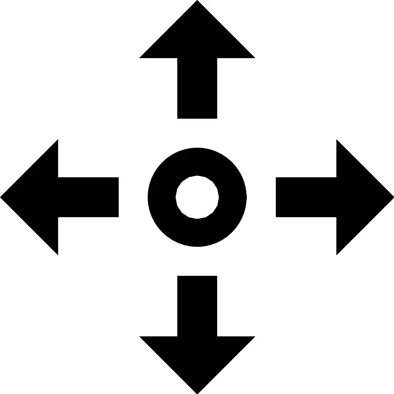 <svg width="800px" height="800px" viewBox="0 0 100 100" xmlns="http://www.w3.org/2000/svg" xmlns:xlink="http://www.w3.org/1999/xlink" aria-hidden="true" role="img" class="iconify iconify--gis" preserveAspectRatio="xMidYMid meet"><path d="M50 0L35.355 14.645H45V30h10V14.645h9.645L50 0zM14.645 35.355L0 50l14.645 14.645V55H30V45H14.645v-9.645zm70.71 0V45H70v10h15.355v9.645L100 50L85.355 35.355zM50 37.45c-6.89 0-12.55 5.661-12.55 12.551c0 6.89 5.66 12.55 12.55 12.55c6.656 0 12.114-5.296 12.48-11.866a3.5 3.5 0 0 0 .07-.684a3.5 3.5 0 0 0-.071-.7C62.104 42.739 56.65 37.45 50 37.45zm0 7c3.107 0 5.55 2.444 5.55 5.551s-2.443 5.55-5.55 5.55c-3.107 0-5.55-2.443-5.55-5.55c0-3.107 2.443-5.55 5.55-5.55zM45 70v15.355h-9.645L50 100l14.645-14.645H55V70H45z" fill="#000000"></path></svg>