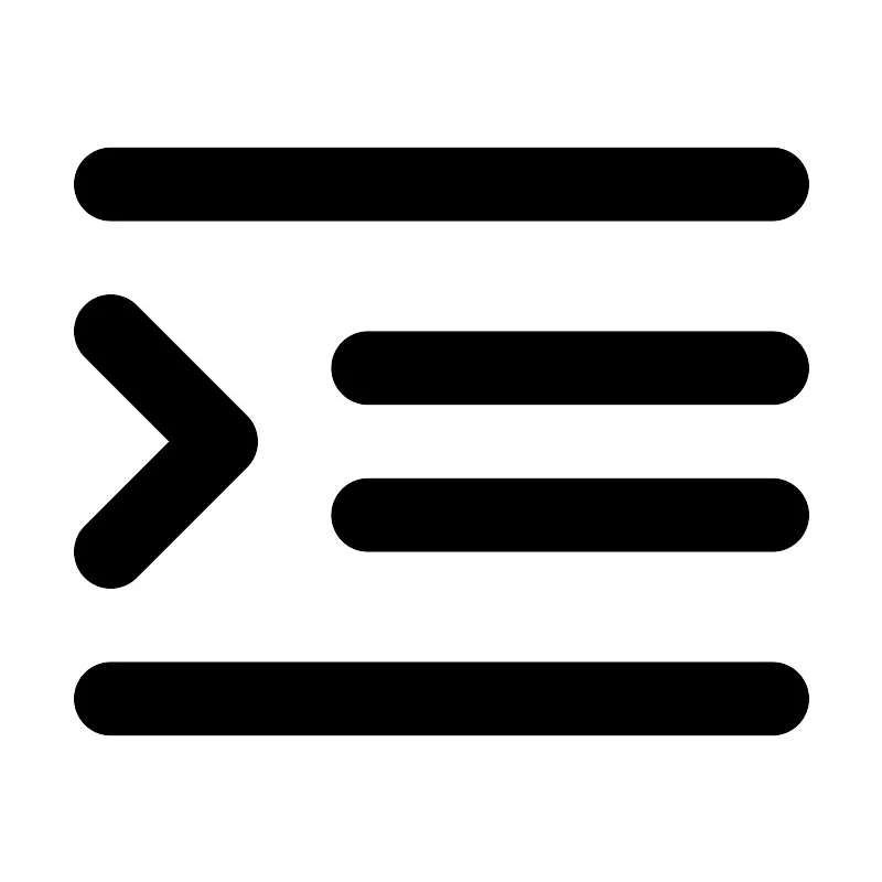 <path d="M3 5H21M10 10H21M10 14H21M3 19H21M3 9L6 12L3 15" stroke="#000000" stroke-width="2" stroke-linecap="round" stroke-linejoin="round"/>