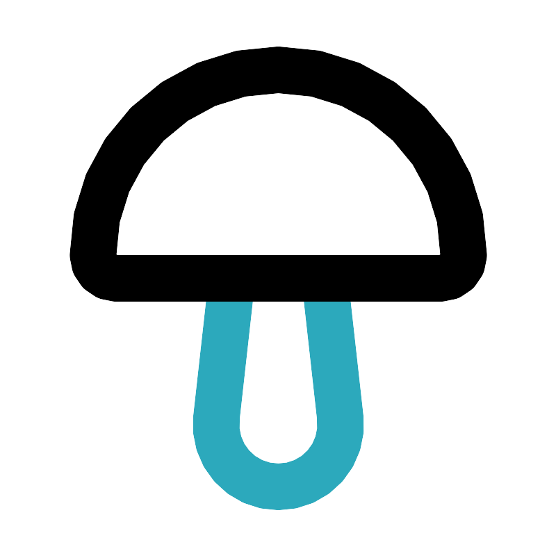 <svg fill="#000000" width="800px" height="800px" viewBox="0 0 24 24" id="mushroom" data-name="Line Color" xmlns="http://www.w3.org/2000/svg" class="icon line-color"><path id="secondary" d="M14,12H10l-.67,6A2.68,2.68,0,0,0,12,21h0a2.68,2.68,0,0,0,2.67-3Z" style="fill: none; stroke: rgb(44, 169, 188); stroke-linecap: round; stroke-linejoin: round; stroke-width: 2;"></path><path id="primary" d="M12,3h0a8,8,0,0,1,8,8v0a1,1,0,0,1-1,1H5a1,1,0,0,1-1-1v0A8,8,0,0,1,12,3Z" style="fill: none; stroke: rgb(0, 0, 0); stroke-linecap: round; stroke-linejoin: round; stroke-width: 2;"></path></svg>