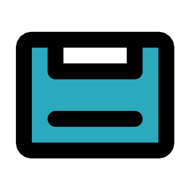 <svg fill="#000000" width="800px" height="800px" viewBox="0 0 24 24" id="music-cassette" data-name="Flat Line" xmlns="http://www.w3.org/2000/svg" class="icon flat-line"><path id="secondary" d="M20,5H17V9H7V5H4A1,1,0,0,0,3,6V18a1,1,0,0,0,1,1H20a1,1,0,0,0,1-1V6A1,1,0,0,0,20,5Z" style="fill: rgb(44, 169, 188); stroke-width: 2;"></path><path id="primary" d="M7,5H17V9H7ZM7,15H17M3,6V18a1,1,0,0,0,1,1H20a1,1,0,0,0,1-1V6a1,1,0,0,0-1-1H4A1,1,0,0,0,3,6Z" style="fill: none; stroke: rgb(0, 0, 0); stroke-linecap: round; stroke-linejoin: round; stroke-width: 2;"></path></svg>