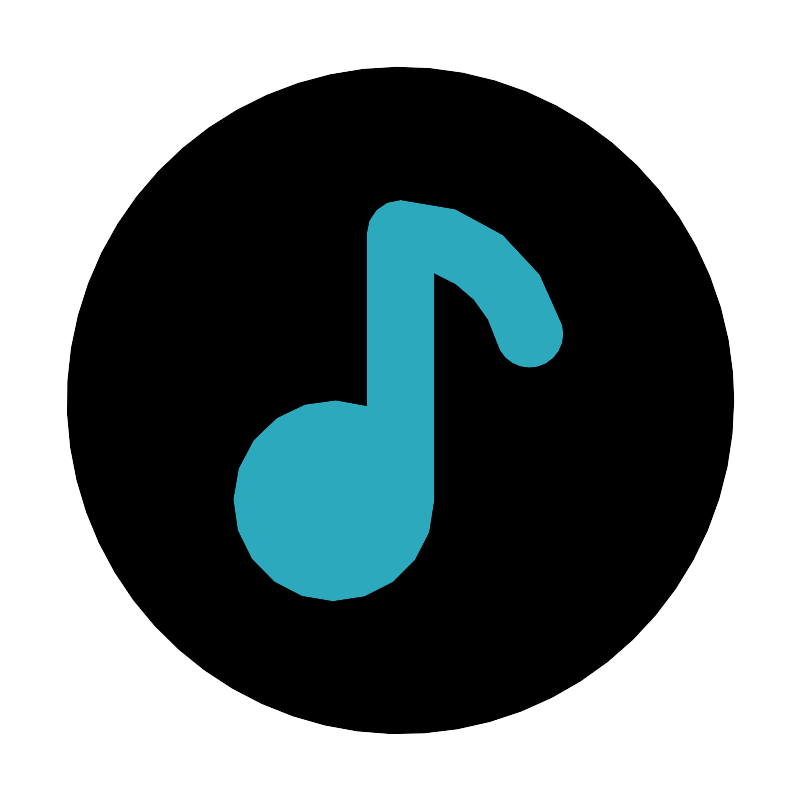 <svg fill="#000000" width="800px" height="800px" viewBox="0 0 24 24" id="music-circle" data-name="Flat Color" xmlns="http://www.w3.org/2000/svg" class="icon flat-color"><circle id="primary" cx="12" cy="12" r="10" style="fill: rgb(0, 0, 0);"></circle><path id="secondary" d="M16.84,9.75A5,5,0,0,0,12,6a1,1,0,0,0-1,1v5.18A3,3,0,1,0,13,15V8.17a3,3,0,0,1,1.9,2.08,1,1,0,1,0,1.94-.5Z" style="fill: rgb(44, 169, 188);"></path></svg>