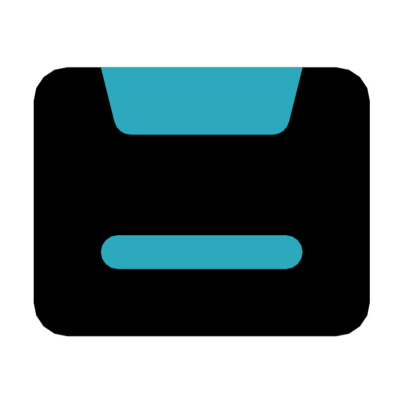 <svg fill="#000000" width="800px" height="800px" viewBox="0 0 24 24" id="music-tape" data-name="Flat Color" xmlns="http://www.w3.org/2000/svg" class="icon flat-color"><rect id="primary" x="2" y="4" width="20" height="16" rx="2" style="fill: rgb(0, 0, 0);"></rect><path id="secondary" d="M7,14H17a1,1,0,0,1,0,2H7a1,1,0,0,1,0-2ZM17.19,7.24,18,4H6l.81,3.24a1,1,0,0,0,1,.76h8.44A1,1,0,0,0,17.19,7.24Z" style="fill: rgb(44, 169, 188);"></path></svg>