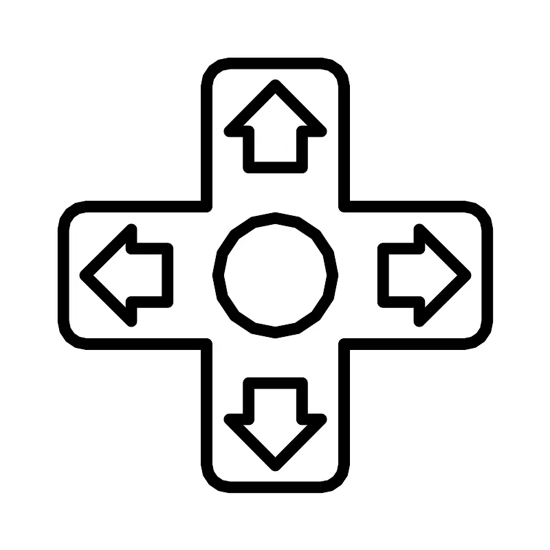 <svg width="800px" height="800px" viewBox="0 0 48 48" id="a" xmlns="http://www.w3.org/2000/svg"><defs><style>.b{fill:none;stroke:#000000;stroke-linecap:round;stroke-linejoin:round;}</style></defs><path class="b" d="M40.5,18h-10.5V7.5c0-1.1046-.8954-2-2-2h-8c-1.1046,0-2,.8954-2,2v10.5H7.5c-1.1046,0-2,.8954-2,2v8c0,1.1046,.8954,2,2,2h10.5v10.5c0,1.1046,.8954,2,2,2h8c1.1046,0,2-.8954,2-2v-10.5h10.5c1.1046,0,2-.8954,2-2v-8c0-1.1046-.8954-2-2-2Z"/><circle class="b" cx="24" cy="24" r="5"/><polygon class="b" points="40.5955 24 36.568 20 36.568 21.672 33.4045 21.672 33.4045 26.3279 36.568 26.3279 36.568 28 40.5955 24"/><polygon class="b" points="7.4045 24 11.432 28 11.432 26.328 14.5955 26.328 14.5955 21.6721 11.432 21.6721 11.432 20 7.4045 24"/><polygon class="b" points="24 40.5955 28 36.568 26.328 36.568 26.328 33.4045 21.6721 33.4045 21.6721 36.568 20 36.568 24 40.5955"/><polygon class="b" points="24 7.4045 20 11.432 21.672 11.432 21.672 14.5955 26.3279 14.5955 26.3279 11.432 28 11.432 24 7.4045"/></svg>