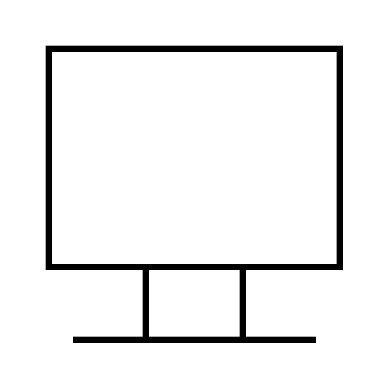 <svg width="800px" height="800px" viewBox="0 0 64 64" xmlns="http://www.w3.org/2000/svg" fill="none" stroke="#000000"><rect x="8" y="8" width="48" height="36"/><line x1="12" y1="56" x2="52" y2="56"/><line x1="40" y1="44" x2="40" y2="56"/><line x1="24" y1="44" x2="24" y2="56"/></svg>