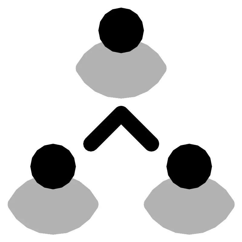 <svg width="800px" height="800px" viewBox="0 0 32 32" id="OBJECT" xmlns="http://www.w3.org/2000/svg"><defs><style>.cls-1{fill:#b2b2b2;}</style></defs><title/><path class="cls-1" d="M21.9,9.43a1,1,0,0,0,0-.86A6.49,6.49,0,0,0,16,5a6.49,6.49,0,0,0-5.9,3.57,1,1,0,0,0,0,.86A6.49,6.49,0,0,0,16,13,6.49,6.49,0,0,0,21.9,9.43Z"/><path class="cls-1" d="M7,23a6.49,6.49,0,0,0-5.9,3.57,1,1,0,0,0,0,.86A6.49,6.49,0,0,0,7,31a6.49,6.49,0,0,0,5.9-3.57,1,1,0,0,0,0-.86A6.49,6.49,0,0,0,7,23Z"/><path class="cls-1" d="M30.9,26.57a6.66,6.66,0,0,0-11.8,0,1,1,0,0,0,0,.86,6.66,6.66,0,0,0,11.8,0A1,1,0,0,0,30.9,26.57Z"/><circle cx="16" cy="4" r="3"/><circle cx="7" cy="22" r="3"/><circle cx="25" cy="22" r="3"/><path d="M20,20a1,1,0,0,1-.71-.29L16,16.41l-3.29,3.3a1,1,0,0,1-1.42-1.42l4-4a1,1,0,0,1,1.42,0l4,4a1,1,0,0,1,0,1.42A1,1,0,0,1,20,20Z"/></svg>