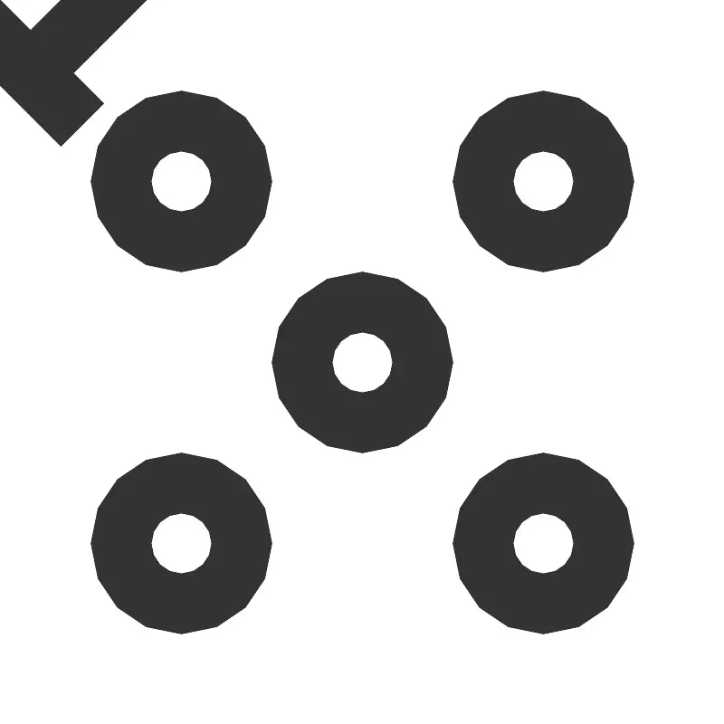 <svg width="800px" height="800px" viewBox="0 0 24 24" data-name="025_SCIENCE" id="_025_SCIENCE" xmlns="http://www.w3.org/2000/svg"><defs><style>.cls-1{fill:#333;}</style></defs><path class="cls-1" d="M6,9A3,3,0,1,1,9,6,3,3,0,0,1,6,9ZM6,5A1,1,0,1,0,7,6,1,1,0,0,0,6,5Z"/><path class="cls-1" d="M12,15a3,3,0,1,1,3-3A3,3,0,0,1,12,15Zm0-4a1,1,0,1,0,1,1A1,1,0,0,0,12,11Z"/><path class="cls-1" d="M18,9a3,3,0,1,1,3-3A3,3,0,0,1,18,9Zm0-4a1,1,0,1,0,1,1A1,1,0,0,0,18,5Z"/><path class="cls-1" d="M18,21a3,3,0,1,1,3-3A3,3,0,0,1,18,21Zm0-4a1,1,0,1,0,1,1A1,1,0,0,0,18,17Z"/><path class="cls-1" d="M6,21a3,3,0,1,1,3-3A3,3,0,0,1,6,21Zm0-4a1,1,0,1,0,1,1A1,1,0,0,0,6,17Z"/><rect class="cls-1" height="4.83" transform="translate(-3.73 9) rotate(-45)" width="2" x="8" y="6.59"/><rect class="cls-1" height="2" transform="translate(-1.97 13.24) rotate(-45)" width="4.83" x="12.59" y="8"/><rect class="cls-1" height="2" transform="translate(-7.97 10.76) rotate(-45)" width="4.83" x="6.59" y="14"/><rect class="cls-1" height="4.83" transform="translate(-6.21 15) rotate(-45)" width="2" x="14" y="12.59"/></svg>