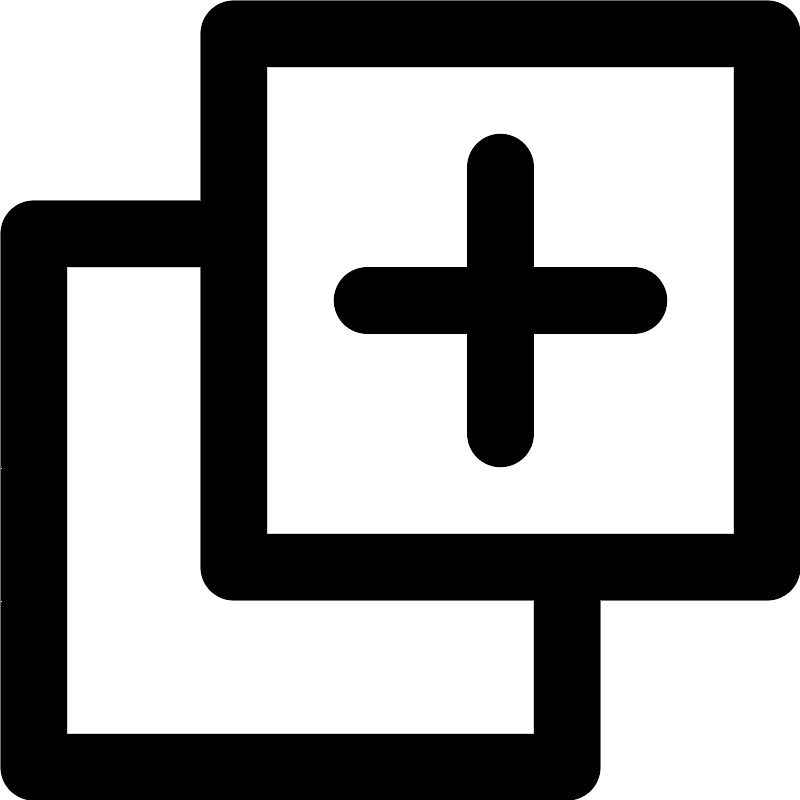 <path fill="none" stroke="#000000" stroke-width="2" d="M11,9 L19,9 M15,13 L15,5 M17,17 L17,23 L1,23 L1,7 L1,7 L7,7 M7,1 L23,1 L23,17 L7,17 L7,1 Z"/>