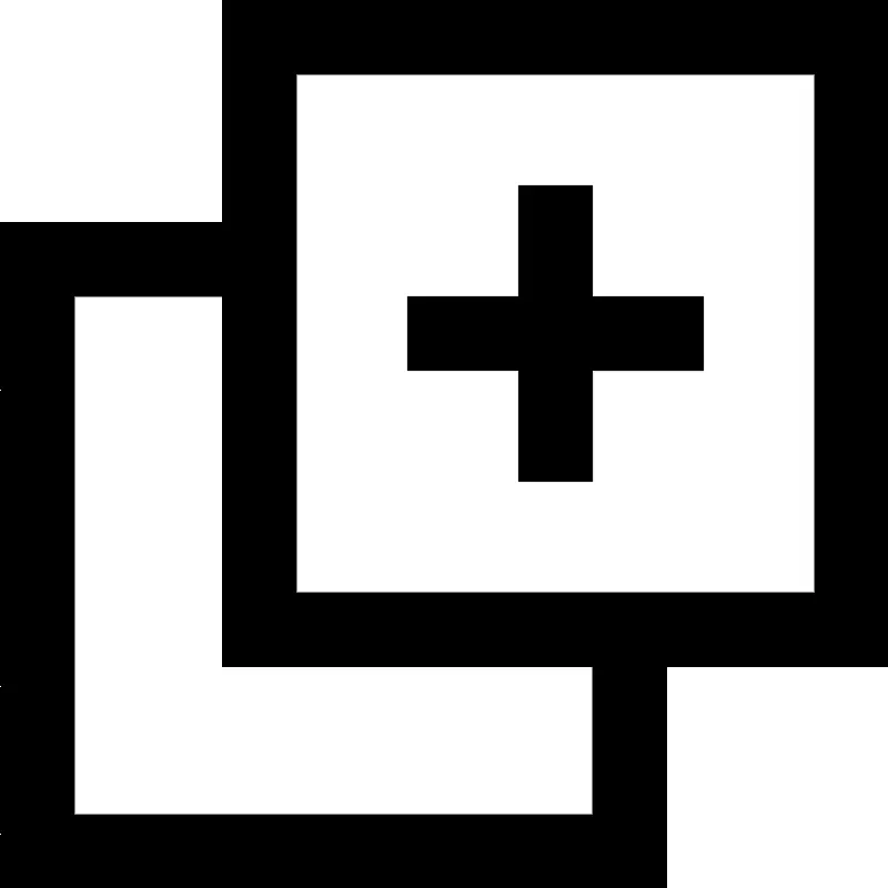 <path d="M18,24H0V6h6v2H2v14h14v-4H6V0h18v18h-6V24z M8,16h14V2H8V16z M16,13h-2v-3h-3V8h3V5h2v3h3v2h-3V13z"/>